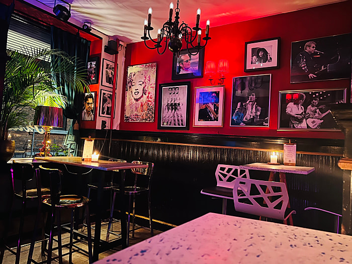 Pinds Café består af et stort lokale med plads til 40 personer. Lokalet er inddelt i små mindre sektioner, hvor I kan sidde i stemningsfulde omgivelser. Her kan I starte dagen med jeres seriøse og arbejdsrelaterede dagsorden. Men når dag bliver til aften kan caféen omdannes til en festlig og atmosfærisk klub, hvor I kan tage et spil terninger, tage en sludder ved baren mens I nyder en lækker cocktail eller slå jer løs på dansegulvet til højt musik under discokuglens flimrende lys. Herved er caféen et alsidigt lokale, hvor det er muligt at kombinere jeres professionelle agenda med fest og farver. Indretningen er holdt i en retro amerikansk stil, LED-skilte, retro plakater, siddergrupper med sorte lædersofaer og farvede stole samt rødmalede vægge. Når aftenen bryder frem kan lyset dæmpes, og neonlys i lilla og røde farver kan tændes. Herved skabes rammerne for en eksklusiv og og opløftende atmosfære, som fører jer tilbage til de glade 60'ere.