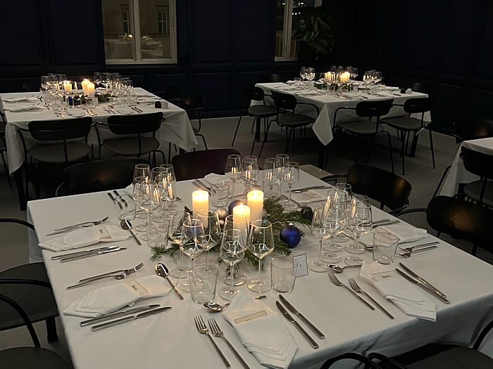 Gammel Strand er et sofistikeret og elegant lokale, der forener det klassiske og herskabelige med det moderne og enkle. Her er lokalet dekoreret med smukke kongeblå træpaneler, som giver lokalet en særlig karakter og luksuriøs elegance. Samtidig er møbleringen moderne og enkel, hvilket giver en smuk kontrast til de blå træpaneler, som tilsammen skaber en stilfuld og behagelig atmosfære. Fra vinduespartierne strømmer det naturlig lys ind i lokalet og giver en smuk udsigt til buens pulserende liv. Gammel Strand er fleksibelt og kan tilpasses til alverdens arrangementer, hvilket gør rummet ideelt uanset arrangementet karakter.