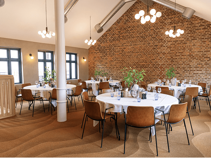 Beliggende på 1. sal findes et hyggeligt og stemningsfuldt semi-privat lokale. Lokalet er placeret ovenover cocktailbaren entré, og er afskærmet fra restauranten. Her får I et stilfuldt og lyst lokale, hvor de store vinduer trækker det naturlige lys indenfor, og giver en lys og behagelig rumfornemmelse. Indretningen er holdt i en moderne og nordisk stil med en rå murstensvæg, brune læderstole, elegante lamper, som giver et behagelig lysskær, grønne planter samt et bølgende korkgulv, der alt sammen giver rummet en livlig og unik atmosfære. Lokalet er fleksibelt og kan udnyttes efter jeres specifikke behov.
