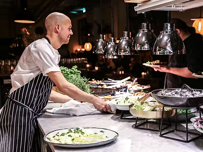 Restauranten er hovedlokalet med en rummelig og stemningsfuld atmosfære. Her er højt til loftet; både bogstaveligt men også i overført betydning, idet lokalet kan rumme alverdens begivenheder og jeres forskellige ønsker og behov for arrangementet. Her gøres alle ideer til virkelighed. Restauranten byder på den store buffet, hvor der serveres lækre retter. Yderligere findes flere områder, som kan udnyttes efter jeres specifikke ønsker. Med sin rummelige atmosfære og indbydende rammer, er Restauranten ideel til de større arrangementer.