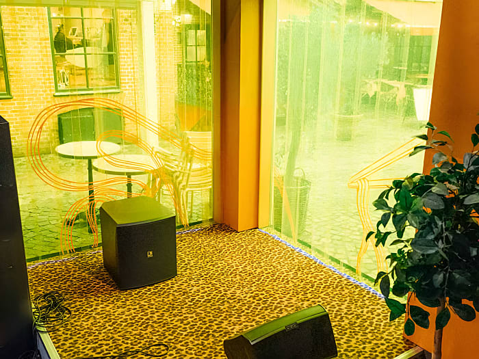 Karaokelokalet er et intimt og festligt lokale. Som navnet antyder er lokalets hovedattraktion muligheden for at synge karaoke gennem karaokemaskinen, der stammer fra Japan, og derved passer perfekt ind i det pan-asiatiske univers. Indretningen bærer præg af en unik kombination mellem det asiatiske og nordiske, hvor orange vægge, gule stole, et leopardmønstret gulvtæppe og neonfarvet glas møder nordisk designerstole, enkle sofaer, træborde og stilrene lamper, som tilsammen skaber en unik og stemningsfuld atmosfære, hvor der er plads til at boltre sig og have en fest. Karaokelokalet oser af charme og god stemning, hvor I har alle muligheder for at få en festlig aften med karaoke, god mad og godt selskab.