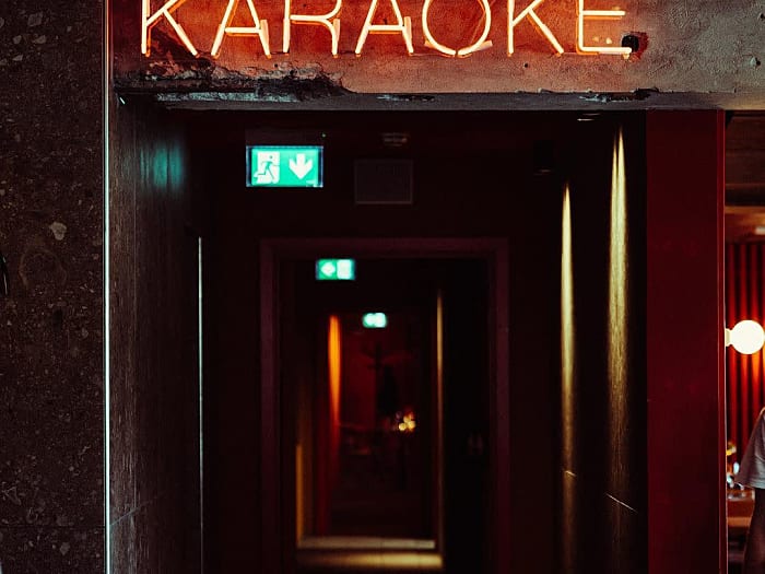 Karaokelokalet er et festligt og stemningsfyldt lokale, hvor Asien og Norden mødes i en unik indretning. Her er orange vægge og -gardin, et rødt loft, orange sofaer og et leopardmønstret gulvtæppe kombineret med nordisk designerstole i træ, glødepærer og designerlamper på bordene, som tilsammen skaber en unik atmosfære, der indbyder til fest og godt humør. Lokalets hovedattraktion er, som navnet antyder, muligheden for at synge med på de største hits gennem Hanzōs karaokemaskine. Karaokelokalet er åbent for hele restauranten, er der vil derved kunne komme andre gæster ind for at underholde med skønsang.