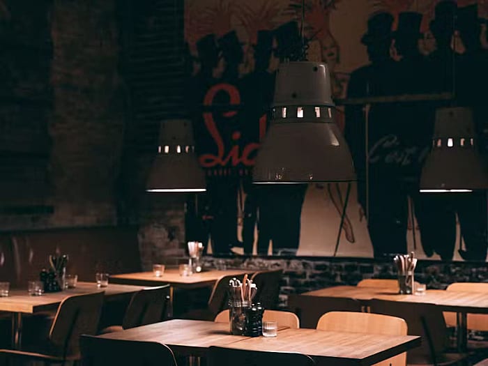 Når I åbner døren til Madklubben bliver I med det samme ramt af en indbydende og autentisk atmosfære der oser af det ærlige og rå Vesterbro, som bydelen traditionelt er synonym for. Indretningen er netop et tegn på dette, hvor fritlagte mursten, betonvægge, trædetaljer, glasdøre i ægte New Yorker-stil, grafitti på væggene samt stemningsfulde lamper i forskellige former og størrelser, der giver en dæmpet belysning, giver restauranten sit urbane og rustikke udtryk, som emmer af liv og god stemning. Her er der højt til loftet, og med de store vinduespartier ud mod Vesterbros livlige gader, danner restauranten rammerne om en hyggelig og atmosfærisk stemning. I restauranten er der mange kroge og åben arealer, hvor køkkenet er åbent og der er massere af rum til boltre jer på. Med sine rummelige arealer, autentiske atmosfære og stemningsfulde indretning er Madklubben ideel til de helt store arrangementer. Her får I en restaurant med kant, som adskiller sig fra mængden. Restauranten er fleksibel og kan udnyttes efter jeres individuelle præferencer.