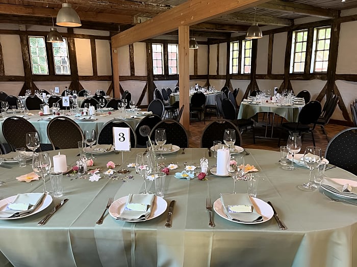 Karlekammersalen er, som navnet antyder, historisk blevet brugt som sovested for godsets karle. I dag står mange af de originale detalje stadig tilbage, idet salen omhyggeligt er blevet restaureret med stor respekt for stedets historie. Derfor fremstår Karlekammersalen også som et autentisk og historisk varemærke, hvor det smukke bindingsværk, fritlagte bjælker og teglklinke gulvet er velholdt, hvilket danner rammerne for en særlig atmosfære. Her oser hele rummet af gamle historier fra en svunden tid, som giver lokalet en ekstra dimension, der ikke findes andre steder. Fra de mange små vinduer trækkes det naturlige lys indenfor, som også giver en særlig rumfornemmelse. Her bliver den smukke have og natur lige udenfor vinduerne en del af lokalet. Indretningen er yderligere holdt i en klassisk stil, med tilføjelse af moderne faciliteter som AV-udstyr.