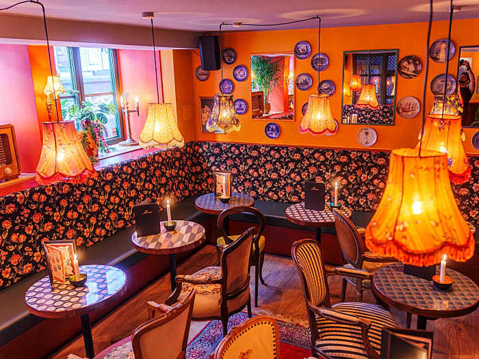 Palmehaven består af flere hyggelige kroge og stemningsfulde hjørner. Her er indretningen holdt i en klassisk dansk stil med stoflamper med frynser, blomsterede sofaer, autentiske stole, trægulve, klassiske tæpper, dekorative platter på væggene, farvede vægge og -lamper samt talrige pyntegenstande fra en svunden tid. Denne varme og indbydende stil kombineres med moderne elementer som neonlys og mulighed for at spille Playstation. Tilsammen skabes rammerne for en hyggelig og stemningsfuld atmosfære, hvor I med det samme bydes velkommen. Her er der plads til alle - ved bordene kan der tages et spil terning eller en hyggelig snak, ved jukeboxen kan der vælges de største hits, ved poolbordet kan I samles og tage et slag pool, ved Playstation-hjørnet kan I dyste i mere end 100 forskellige spil, i baren kan I få en hyggelig snak over en af de delikate drinks mens dansegulvet er åbent for dem kan fyre de bedste moves af. Palmehaven kan derved danne de perfekte rammer uanset hvor mange og i hvilken anledning arrangementet afholdes.