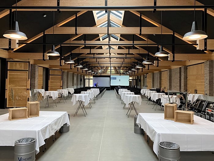 Gubsø Street er til dagligt garage for Gubsøs store samling af klassiske gamle biler. Dog kan det store og rummelige lokale også omdannes til et ekstraordinært lokale for alverdens arrangementer. Gubsø Street har en rustikke og moderne stil med en synlige tagkonstruktion, betongulve, grå murstensvægge, træbeklædte døre samt mørke møbler. Her bliver den synlige tagkonstruktion en form for kunstværk, der med sine smukke detaljer skaber en unik rummelighed og atmosfære. Samtidig danner ovenlysvinduerne samt de store vinduesvægge i hver ende et særligt lysindfald, hvor den smukke natur også bliver en del af indretningen. Dette lysindfald fra flere sider skaber en smuk kontrast til den hårde og rustikke indretning, som også får hinanden til at lyse mere frem. Med sin loftshøjde ud over det sædvanlige, unikke detaljer og rummelige størrelse er Gubsø Street det ideel lokale for de helt store arrangementer, hvor I ønsker et lokale med kant. Her kan I udnytte rummets store areal efter jeres præferencer, hvor lokalet kan indrettes og udformes lige, som I ønsker.