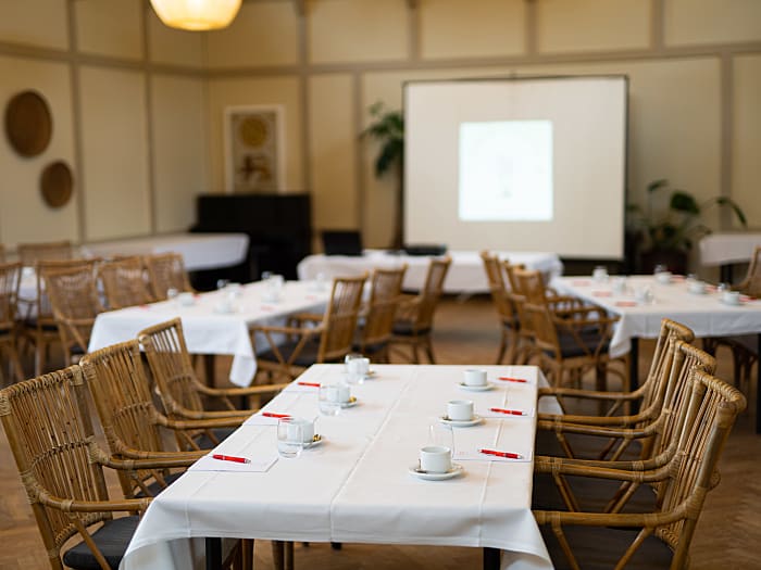 Fladskærme, Lydanlæg, Mikrofon, Skov og natur, Terrassemiljø, Flipover, Lærred, Projektor, Whiteboard, Wifi