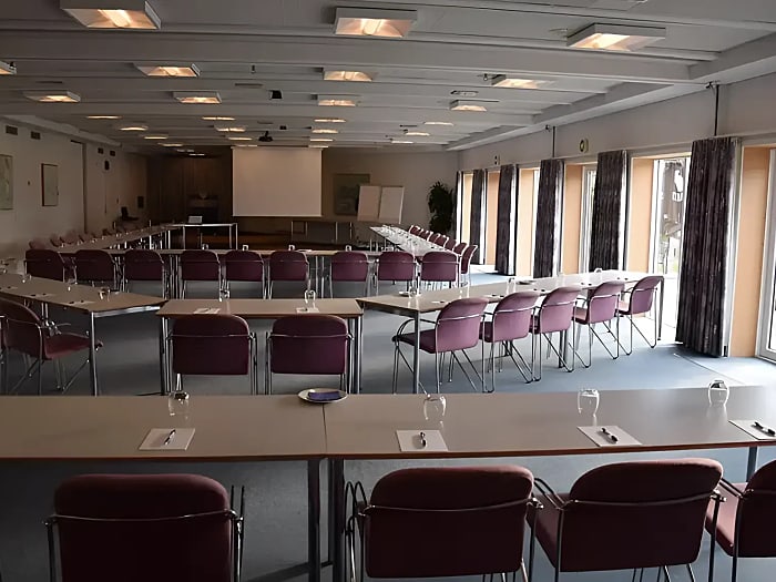 Dette rummelige lokale er skabt til større forsamlinger og kan rumme op til 140 deltagere. K5 er velegnet til alt fra keynote-præsentationer og paneldebatter til generalforsamlinger og virksomhedsarrangementer. Med moderne AV-løsninger og en elegant indretning sikrer lokalet en professionel ramme, der inspirerer til både dialog og samarbejde.