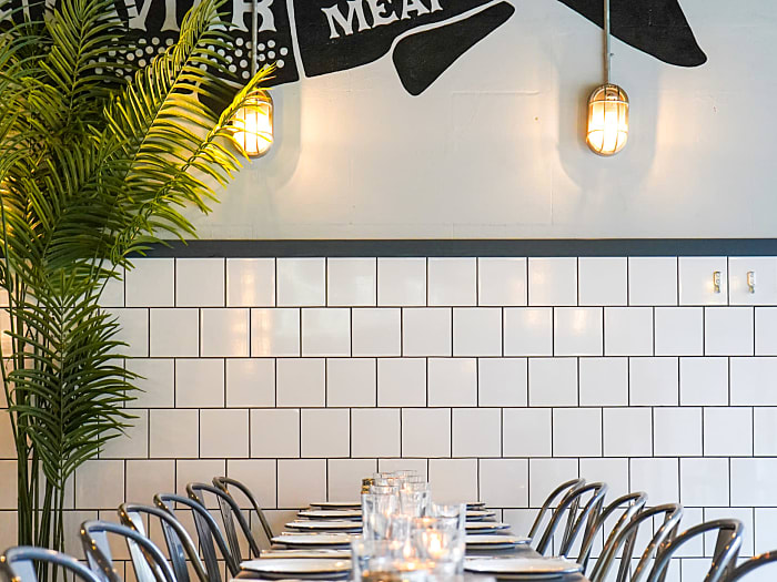 Lokalet i Hooked Carlsberg Byen er en harmonisk blanding af moderne design og rå æstetik. Med højt til loftet og en rummelig atmosfære, byder det på en stilfuld indretning præget af rå betonvægge, der skaber en urban og trendy stemning. Store, frodige planter tilføjer et strejf af natur, mens de hvide klinker giver et rent og elegant udtryk.