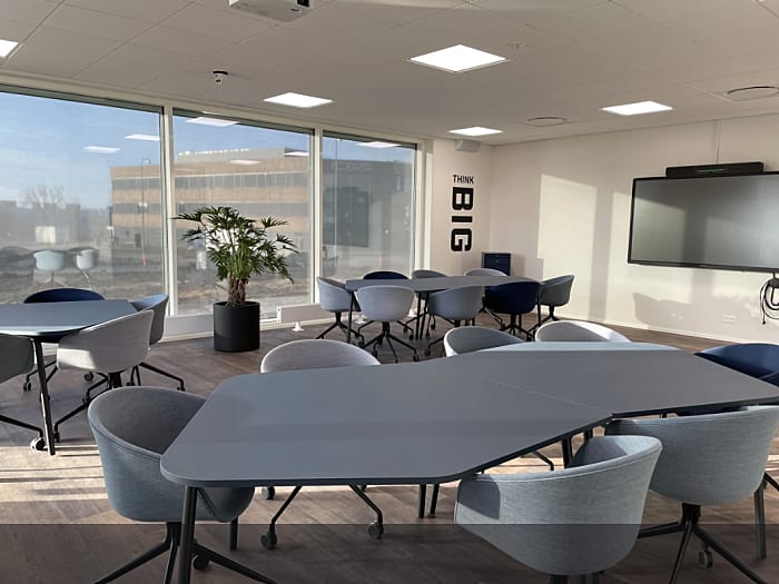 Fladskærme, Lydanlæg, Whiteboard, Hybrid mødeudstyr, Lærred, Projektor, Wifi