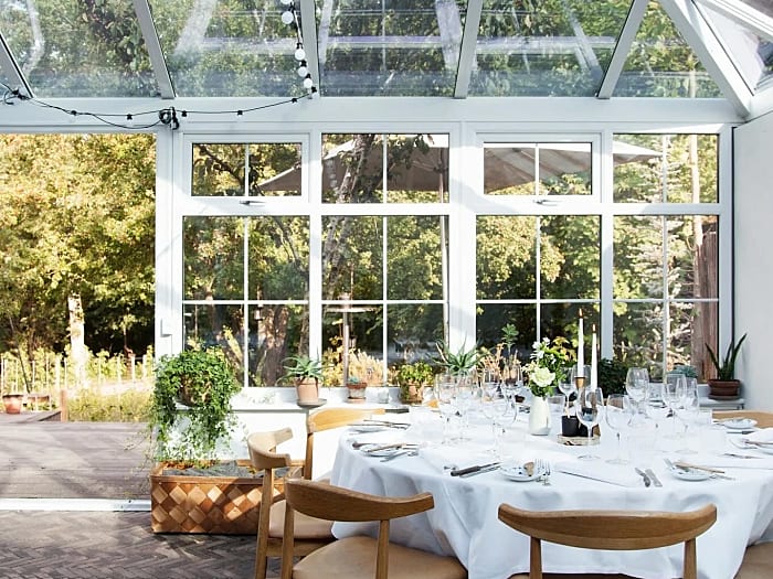 Orangeriet har plads til 5 - 40 personer og blev bygget i 2018 med mulighed for at I sidde helt ude i naturen. Orangeriet har egen stor terrasse med udsigt over bærhaven, hvor det er oplagt at nyde velkomstdrinken eller kaffen.