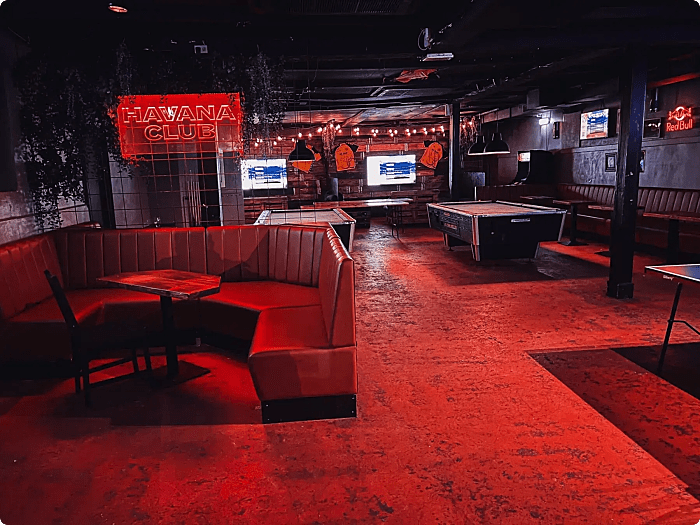 Baren udgør en charmerende fusion af bar og natklub, hvor lokalet de første par timer indhyller gæsterne i en stemning af hygge og intimitet med et bredt udvalg af drinks og øl. Senere på aftenen stiger musikintensiteten, og atmosfæren forvandles gradvist til en festlig stemning.
