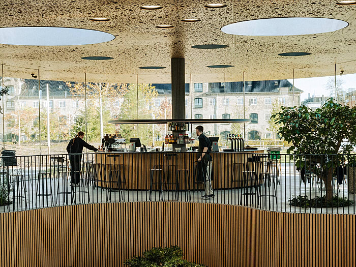 Lokalet er karakteriseret ved dets lyset og åbne atmosfære, der giver en fornemmelse af at befinde sig midt i en frodig have, selv indendørs. Denne særlige atmosfære skabes ved hjælp af rigelige planter, der hænger fra loftet og er placeret rundt omkring i rummet, hvilket tilføjer en livlig og indbydende stemning.