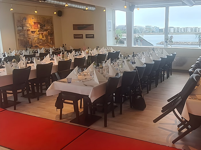Hyggeligt lokale med store vinduespartier der giver et godt naturligt lysindfald. Lokalet har en unik udsigt til Øresund