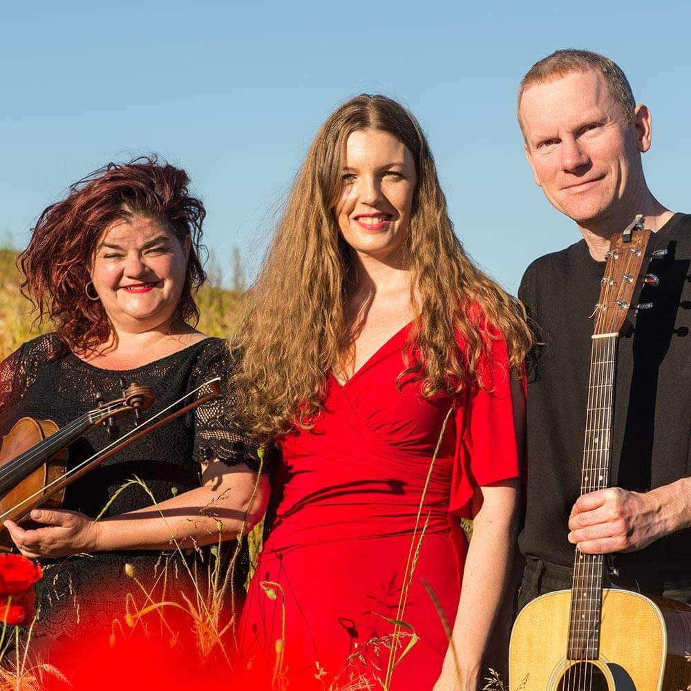 Akustisk trio: Kristine Thastum på sang, Anders Borbye på guitar og Louise Ring Vangsgaard på violin.
