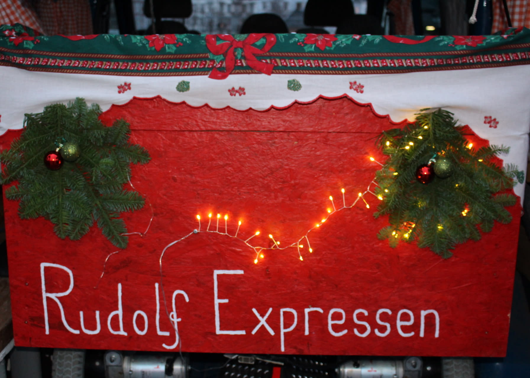 “Rudolf Expressen” en el-drevet julepyntet kane.