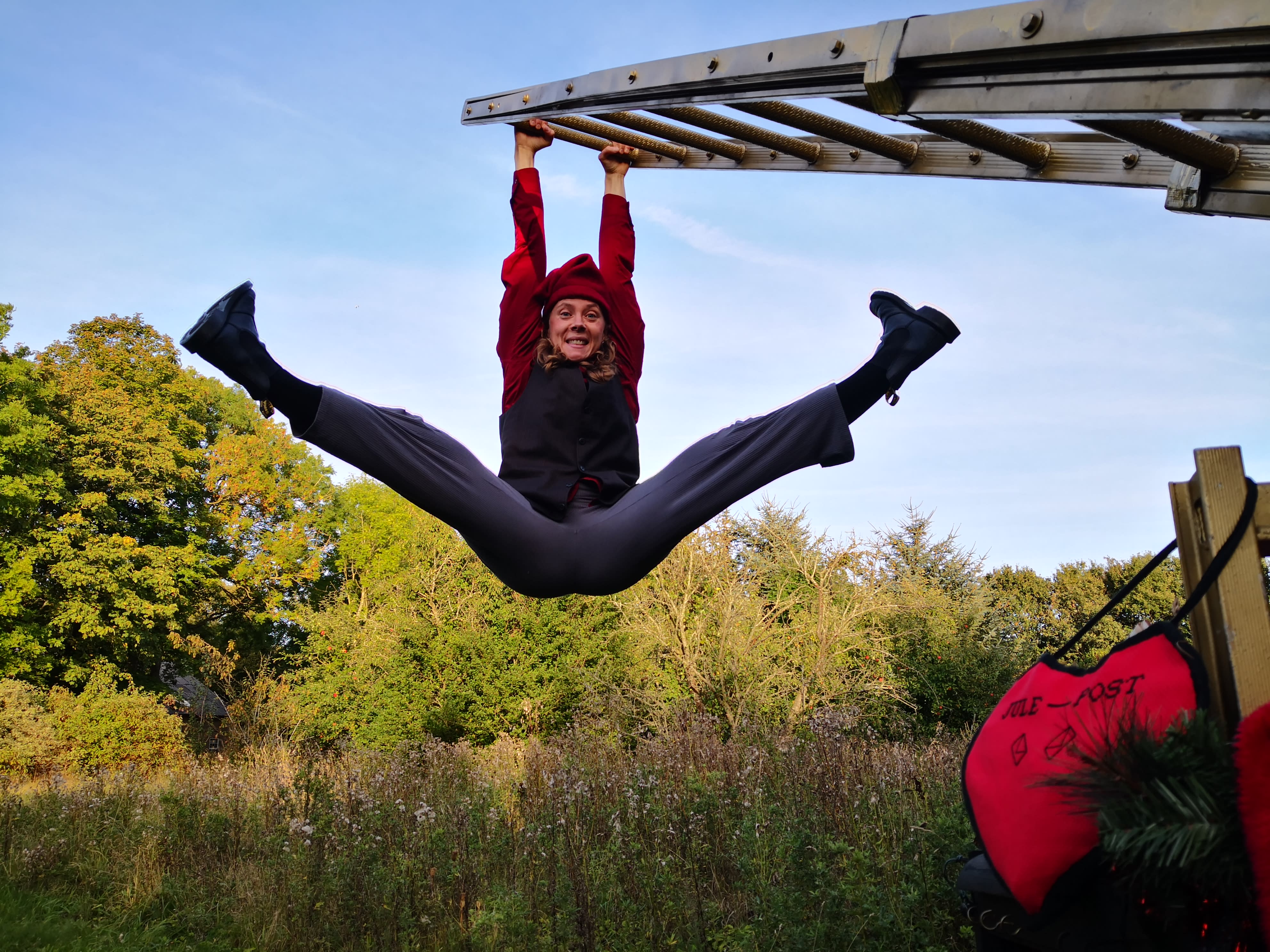 Kravle Nisser i en julepyntet kanecykel, med 5 meter lang roterende kravlestige