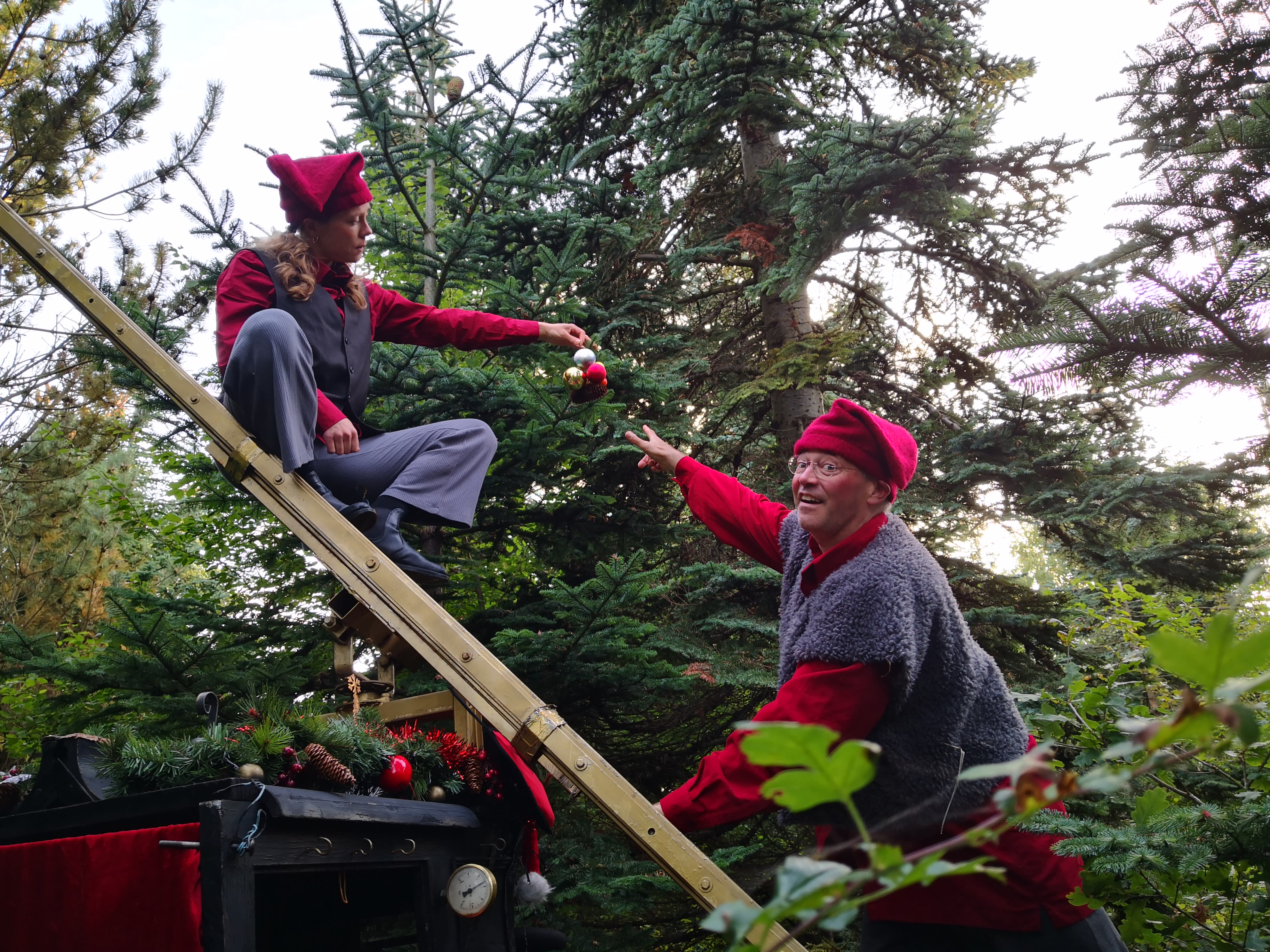Nisserne driller, kravler og julepynter lystigt og komisk i gader og stræder.
