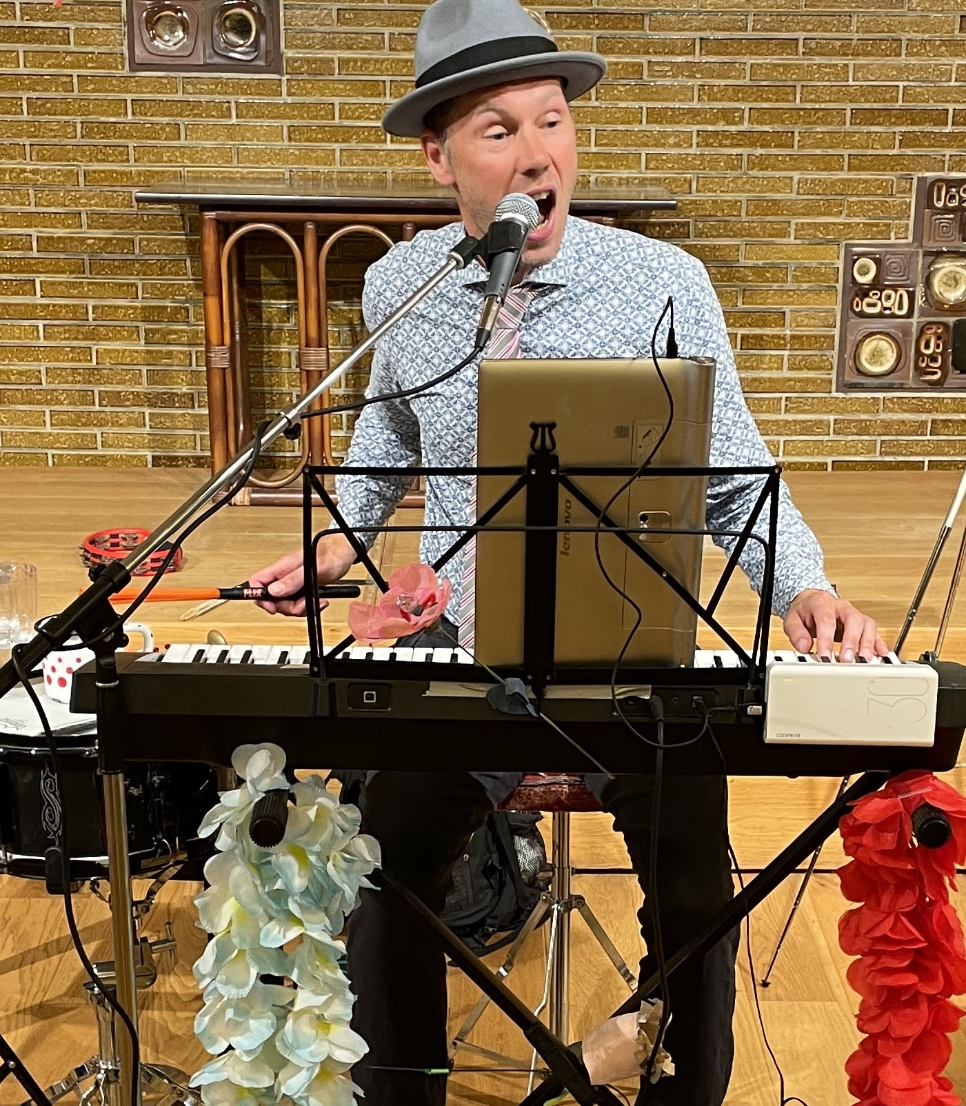 Morten Hæsum, pianist og sanger kommer ud og spiller afslappet og lyttevenligt klaver musik med lidt rolige rytmer til.