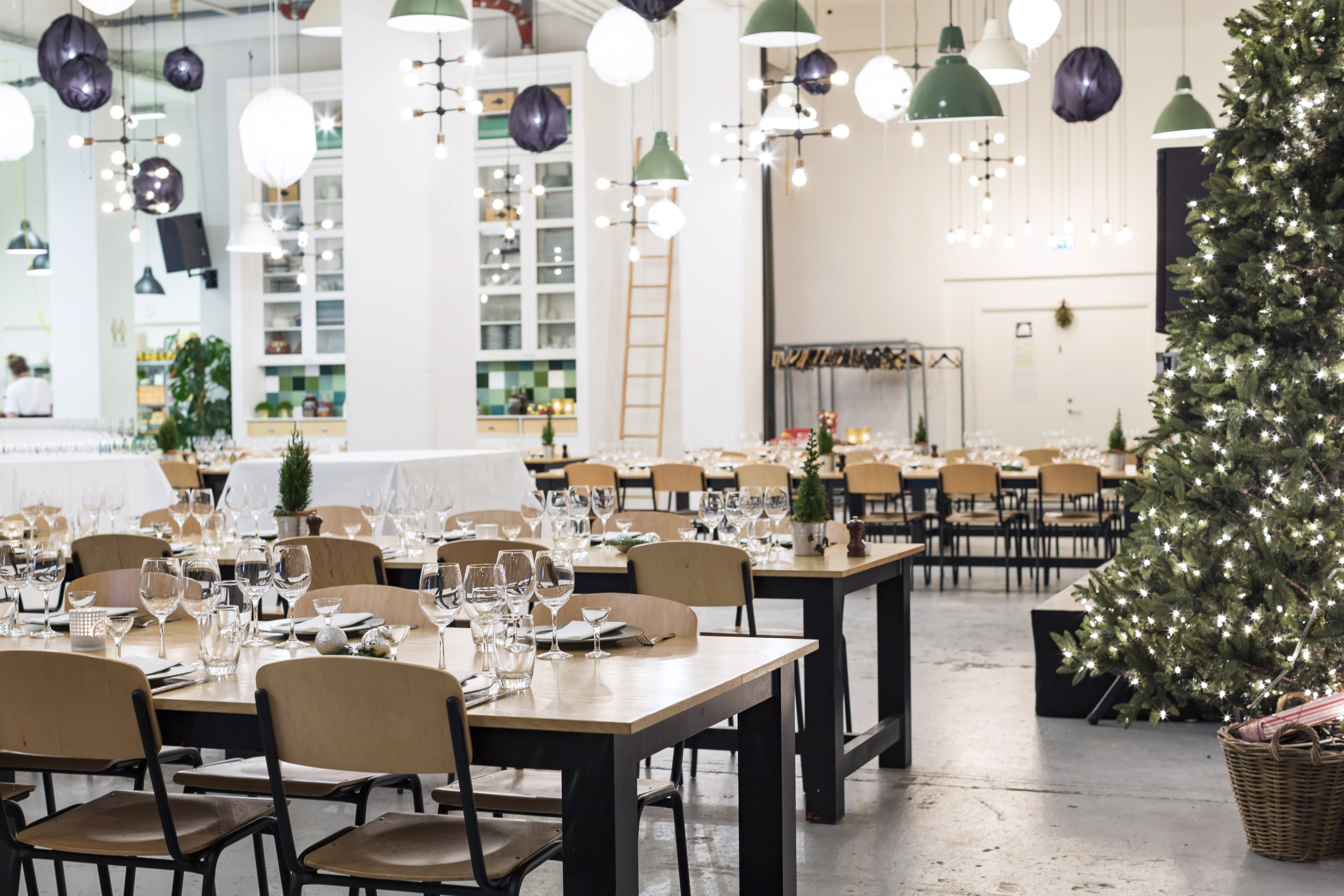 Venuet, Aamanns Køkken & Event, er placeret i B&W's tidligere lagerlokaler på Refshaleøen. Når I træder indenfor vil I blive mødt at et atmosfæreskabende lampehav som strækker sig over de rå betongulve, der sammen med en loftshøjde på næsten 8 meter, giver lokalet en unik stemning, som udspejler sig gennem kombinationen af det rå industrielle look og det moderne og varme islæt i møbleringen. I det store åbne køkken kan I som gæster observere kokkenes arbejde. Lokalet er yderst fleksibelt og velegnet til arrangementer lige fra 40 til 200 gæster. Dette historiske industrilokale ved vandet, med udsigt til Langelinje, muliggør endda ankomst med båd. Udenfor lokalet findes en stor terrasse, som også er mulig at benytte sig af i sommerhalvåret. Her vil der om sommeren være pyntet med store krydderurtebede, og det vil være muligt at få serveret velkomstdrinken i det hyggelige lounge-område eller nyde solnedgangen over København med et glas køligt vin i hånden.