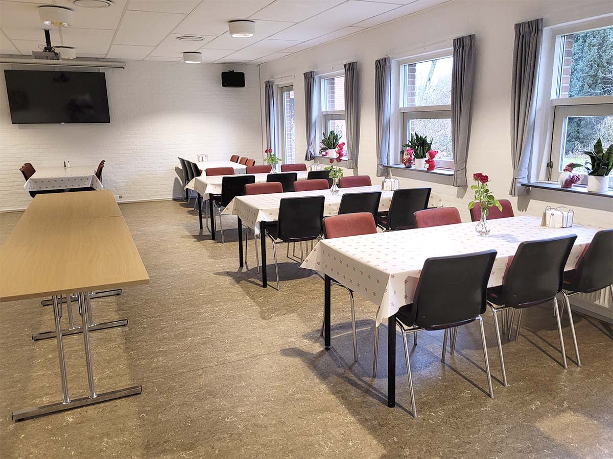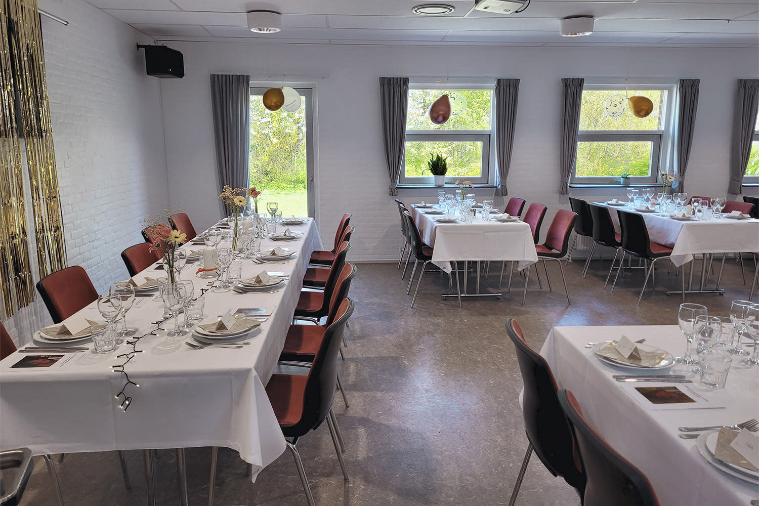 Lokationens største lokale, Sal 1, kan rumme op til 100 deltagere. Grundet lokalets alsidige muligheder og fleksibilitet, egner det sig til en bred vifte af arrangementer. Lokalet er udstyret med moderne AV-udstyr. Lokalet er lyst og rummeligt med højt til loftet og talrige vinduer, der giver et godt naturligt lysindfald. Sal 2, udgør et lyst lokale med plads til 65 personer. Lokalet har udsigt til de naturskønne omgivelser, og har med de store vinduespartier en rummelig og lys atmosfære. Sal 2 er ideel til arrangementer, hvor servering af mad er inkluderet, idet det ligger i forlængelse af industrikøkkenet. Lokalet er fleksibelt og er udstyret med professionelt teknisk udstyr. Beliggende overfor Sal 2 er opholdsstuen med sofapladser, hvilket gør det ideelt at kombinere disse lokaler. Her vil opholdsstuen kunne benyttes til servering af velkomstdrink, kaffestue eller blot til et hyggeligt rum, hvor deltagerne kan trække hen i pauserne.