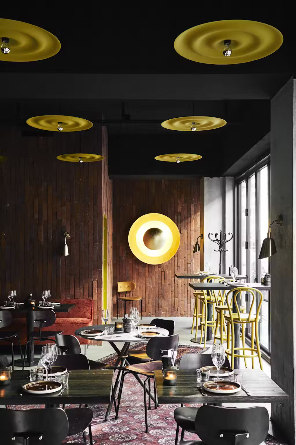 Træd ind i Bazaars fascinerende univers, hvor det gamle posthus på Dronningens Tværgade er forvandlet til en pulserende hulestemning. Her mødes 1960'er-arkitektur med en levende og stemningsfuld indretning, der forener det bedste af dansk design, moderne æstetik og mellemøstlig charme. Rå murstensvægge prydes af persiske tæpper, mens betongulve og -stolper skaber kontrast til de karrygule velourstole og -sofaer. Unikke, dekorative lamper kaster et dæmpet og stemningsfuldt lys over lokalet, der kan tilpasses til enhver lejlighed. Den høje musik er en bevidst del af oplevelsen, der bidrager til den livlige atmosfære og gør hvert besøg til en fest for alle sanser.