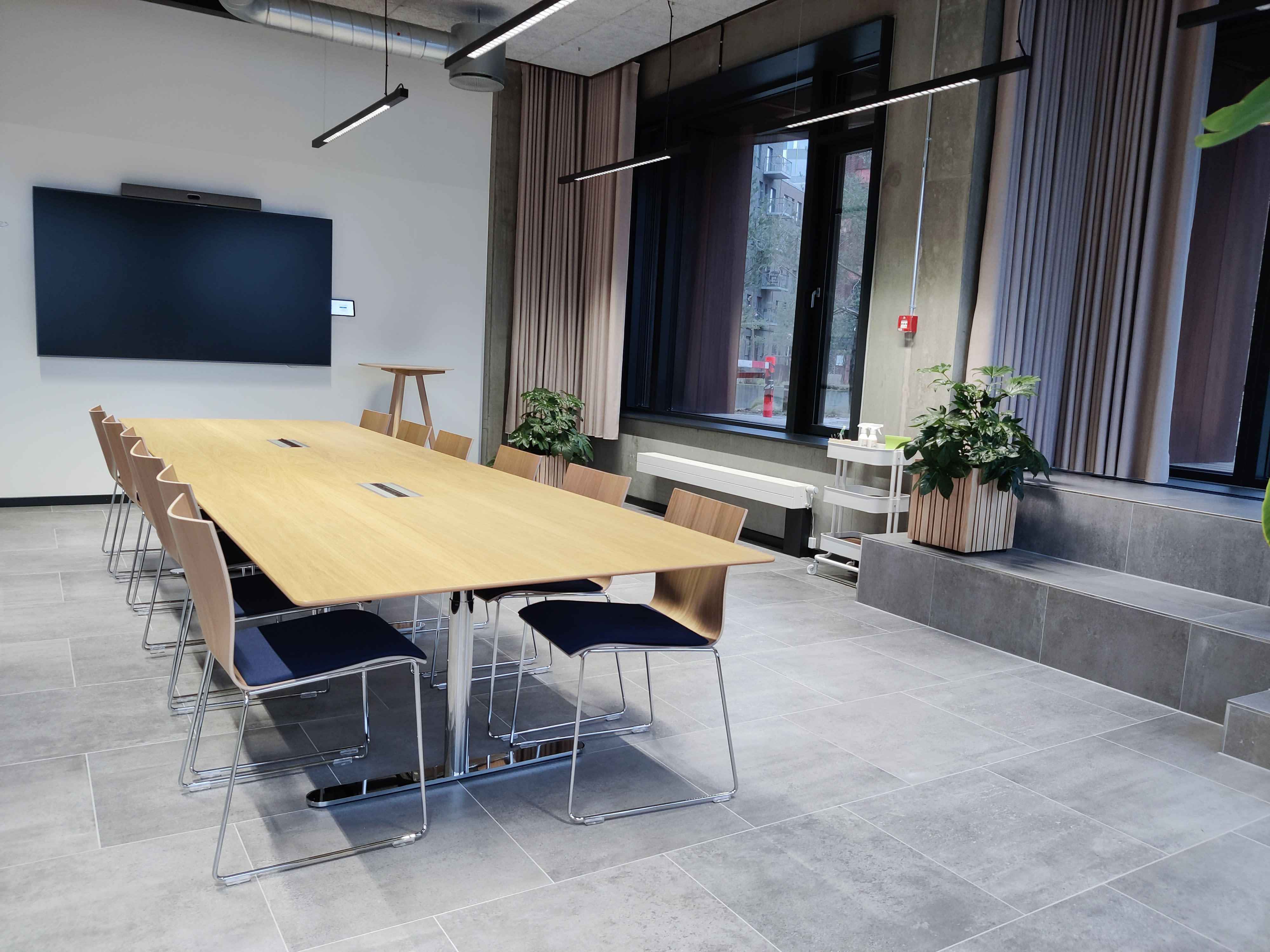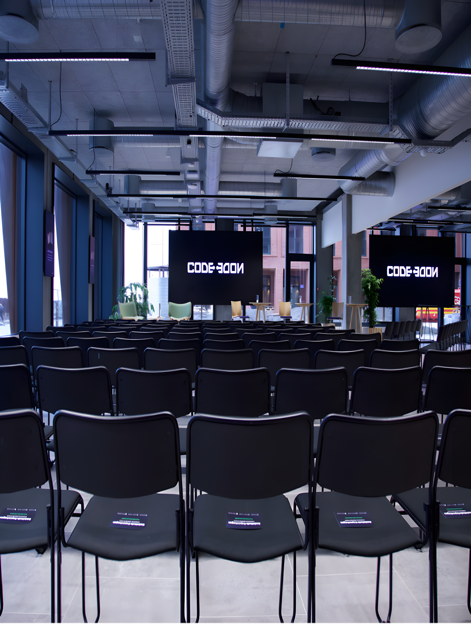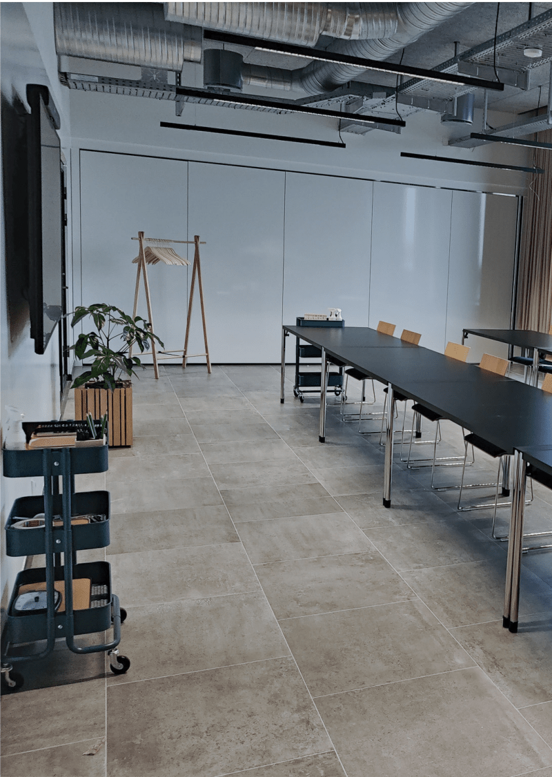 Med sin moderne og rustikke byggestil, er CodeNode opført med tanke for områdets historie indenfor industri. Derfor er stilen holdt i en rå og rustik tone, der kombineres med et moderne twist gennem de højteknologiske løsninger og moderne indretning. Hele lokationen tilbyder en loftshøjde ud over det sædvanlige, hvilket skaber en rummelig og behagelig atmosfære. CodeNodes største lokale, Rising, er det store konferencelokale. Lokalet er udstyret med to store LED-skærme, et førsteklasses lydsystem og et videokamera, hvilket sikrer en sammenhængende og produktiv konferenceoplevelse, uanset om deltagerne er fysisk til stede eller med virtuelt. Tre af de fire vægge består af store vinduer, der fylder rummet med naturligt dagslys og giver en panoramisk havudsigt over Nordhavn. COdeNode byder yderligere på tre unikke mødelokaler, hvor det største er Johnson. Lokalet er bevidst designet til at skabe en intim atmosfære for både læring og samarbejde, for at skabe de perfekte rammer for at vellykke arrangement. Johnson er ideelt til kickoffs, seminarer, masterclasses, workshops og lignende arrangementer, hvor fordybelse, koncentration, kreativitet og nytænkning er i højsædet. Rummet har fuldt skrivetavlevenlige vægge, der giver jer mulighed for at illustrere ideer og visuelle udtryk direkte på væggene. Kelley er CodeNodes møde- og bestyrelseslokale og er et lyst og venligt lokale. Rummet er ideelt til formelle arrangementer og strategiske diskussioner grundet lokalets vigtigste funktioner, som inkluderer fuldt skrivetavlevenlige vægge og en stor skærm, der begge er designet til at forbedre jeres præsentationer og fremme interaktive sessioner. Som det sidste lokale findes Silver, som CodeNodes Design Studio, og er skabt til at opfylde jeres kreative behov. Lokalet er perfekt til arrangementer som Design Thinking workshops, engagerende brainstorming-sessioner eller andre kreative og nytænkende arrangementer. Med vægge, der er skrivevenlige, giver rummet jer mulighed for at skitsere ideer, notere bemærkninger, stikord og noter samt at visualisere koncepter direkte på væggene. Alle tre mødelokaler er tilpasningsvenlige og fleksible, hvor også flere kan kobles sammen alt efter behov.