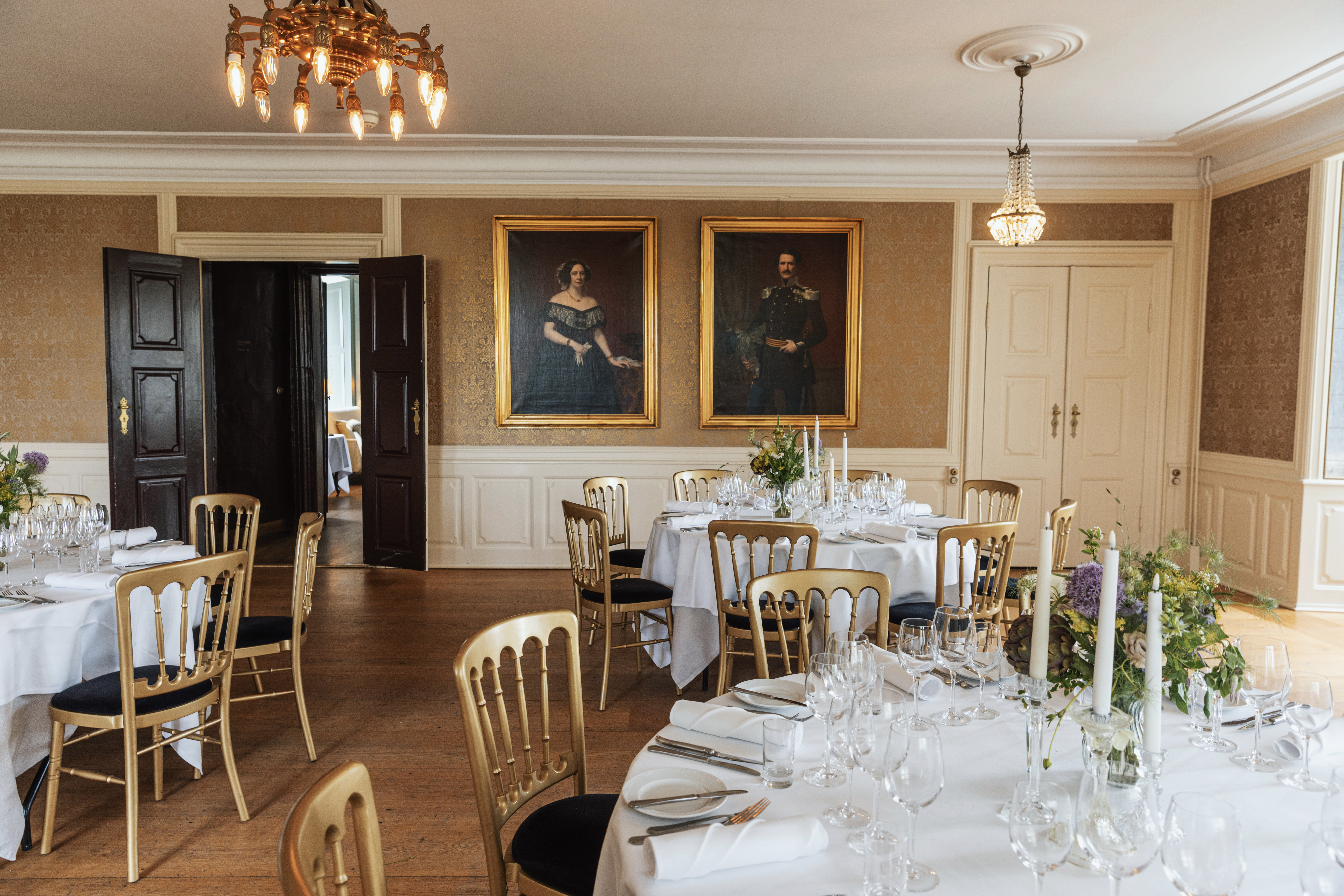 Dragsholm Slot byder på en perlerække af unikke lokaler, der tilpasser sig enhver anledning. Træd ind i Riddersalen, slottets største rum, og bliv overvældet af den ekstravagante indretning med smukke lysekroner, høje paneler og brede plankegulve. Rosensalen tager jer med på en rejse tilbage i tiden med sit imponerende interiør, mens Lensbaronessens værelse oser af eksklusivitet og ro. Den historiske Slotskirke står klar til jeres kirkelige begivenheder, og i Jagtstuen mødes I af en maskulin og unik atmosfære. Hvert lokale fortæller sin egen historie og skaber den perfekte ramme for jeres arrangement.