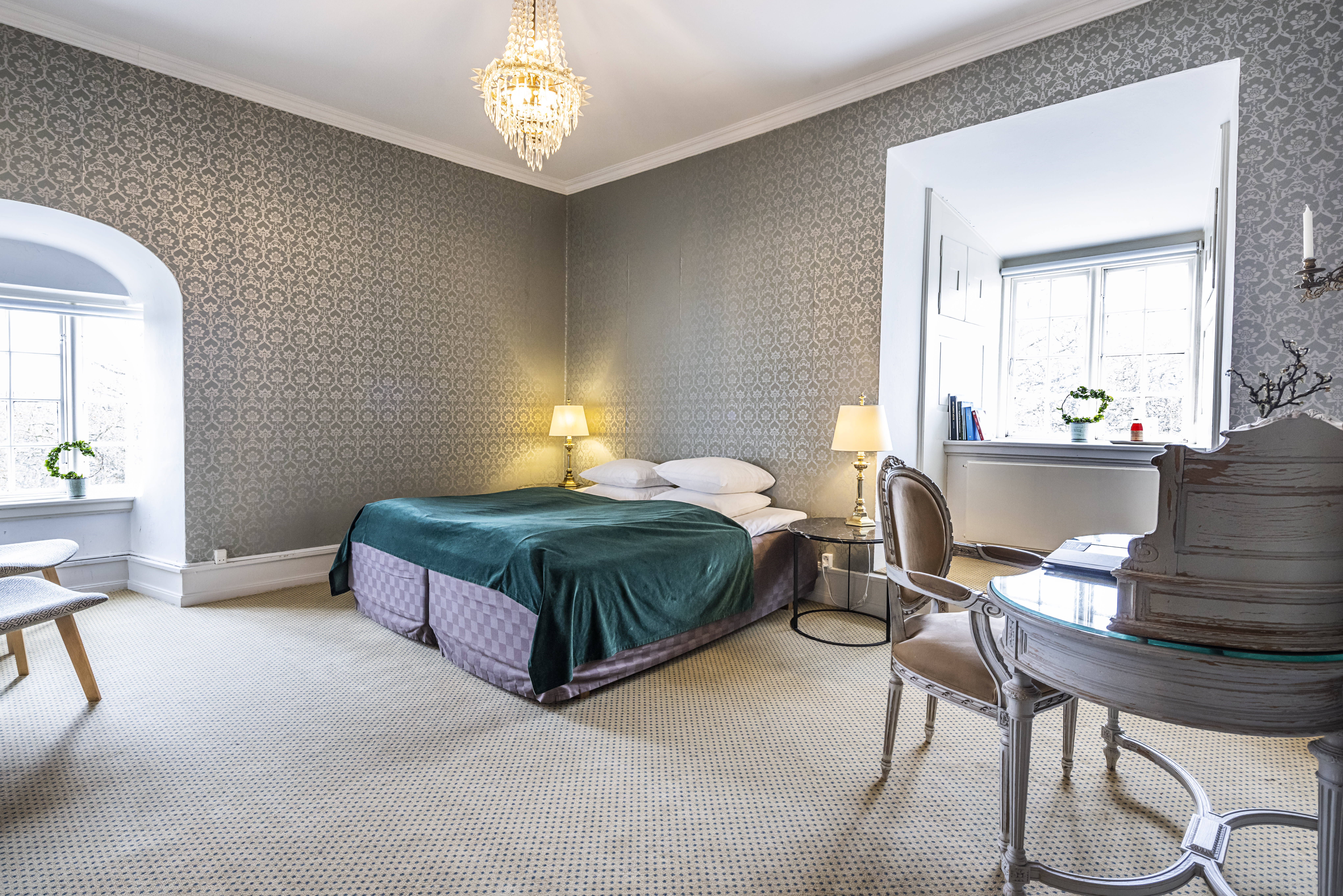 Forlæng den magiske oplevelse med en overnatning i et af Dragsholm Slots 41 unikke værelser. Vælg mellem charmerende slotsværelser, der hensætter jer til en svunden tid, eller moderne godsværelser med terrasse og smuk udsigt. Hvert værelse har sin egen karakter, men alle tilbyder den perfekte kombination af historisk atmosfære og moderne komfort. Væk op til en dejlig slotsmorgenmad og nyd den fredfyldte stemning, før I vender tilbage til hverdagen. En overnatning på Dragsholm Slot er mere end blot en nat væk hjemmefra - det er en rejse gennem tiden i luksuriøse omgivelser.