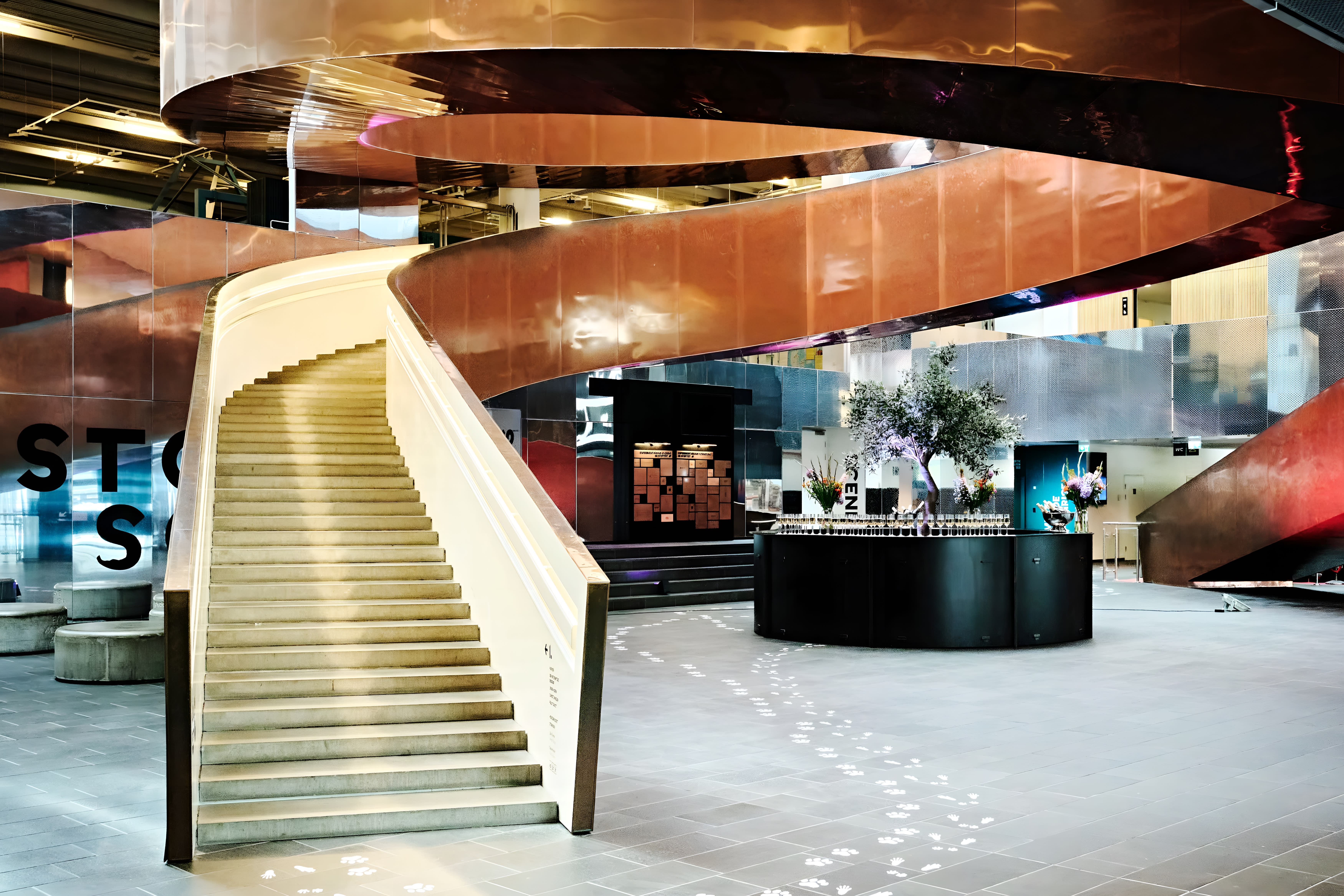 Hovedstadens mest spektakulære entré under - eller op ad - den ikoniske, kobberklædte Helixtrappe.