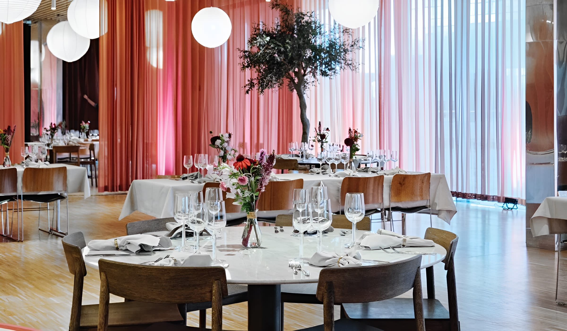I dette unikke rum forenes æstetik og funktionalitet i meget fleksible rammer. De stilfulde omgivelser med højt til loftet kan tilpasses jeres behov, hvad end I ønsker en formel siddende middag eller en mere afslappet aften med madboder og cocktails. Kvalitet og smag i absolut topklasse er garanteret.