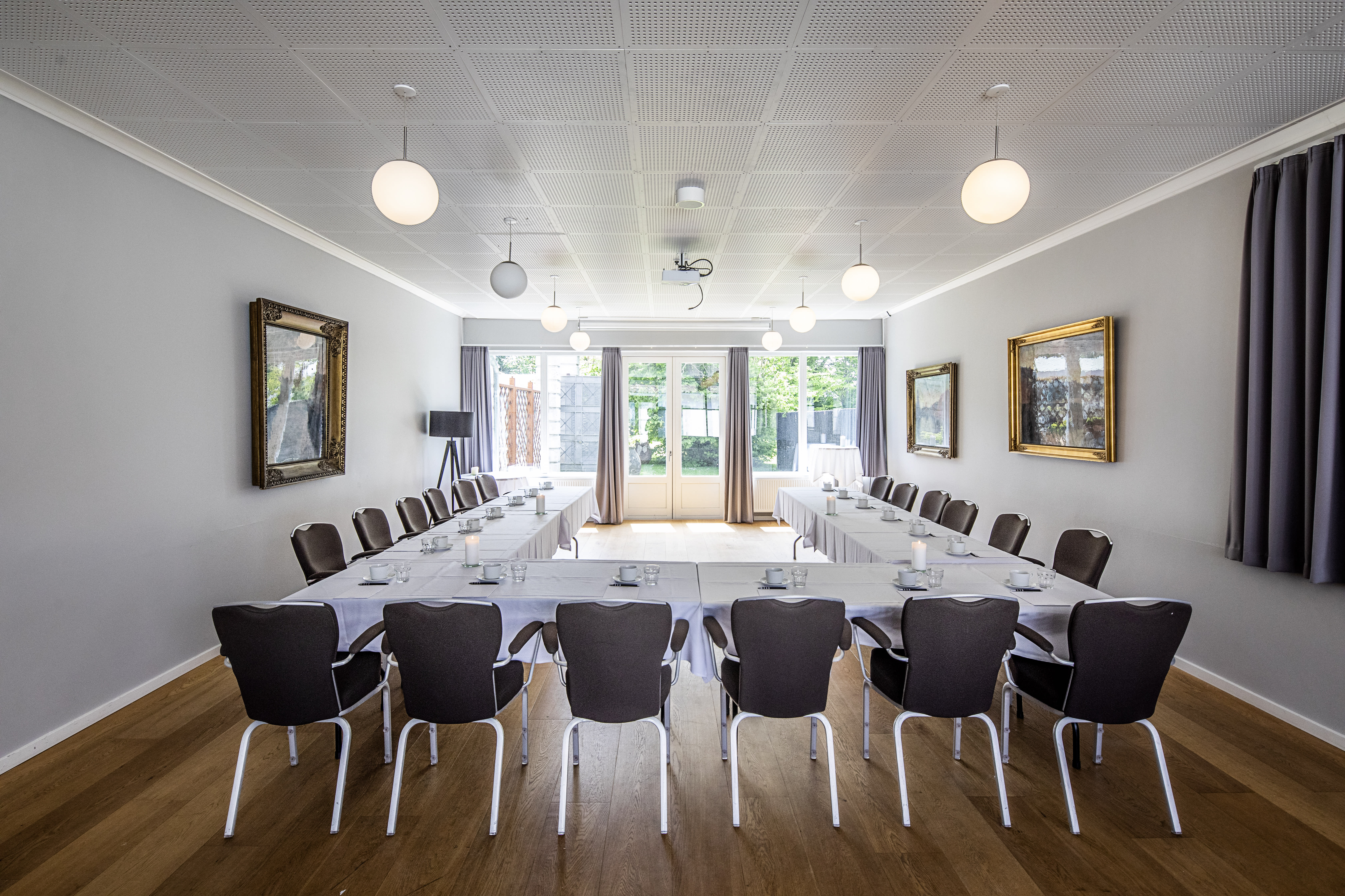 Den Engelsk Salon er et hyggeligt og lyst lokale med direkte adgang til den hyggelige gårdhave og terrasse. Indretningen er præget af en klassisk og historisk stil med mørke trægulve, guldindrammede malerier samt et stort vinduesparti, hvor lyset strømmer ind. Tilsammen skabes en autentisk og rolig atmosfære - ideel for ethvert arrangement. Lokalet er velegnet til arrangementer med op til 35 gæster. På samme størrelse findes Den Franske Salon, som også er et charmerende og hyggeligt lokale, prydet med unikke og smukke lamper, der hænger i buer fra loftet. Dette lokalet kombinerer moderne indretning med en klassisk stil, hvor lokalet både rummer moderne møblering samt klassiske guldindrammede malerier og dekorationer. De store vinduespartier giver et godt naturligt lysindfald til lokalet, hvor terrassedøren giver direkte adgang til terrassen.
