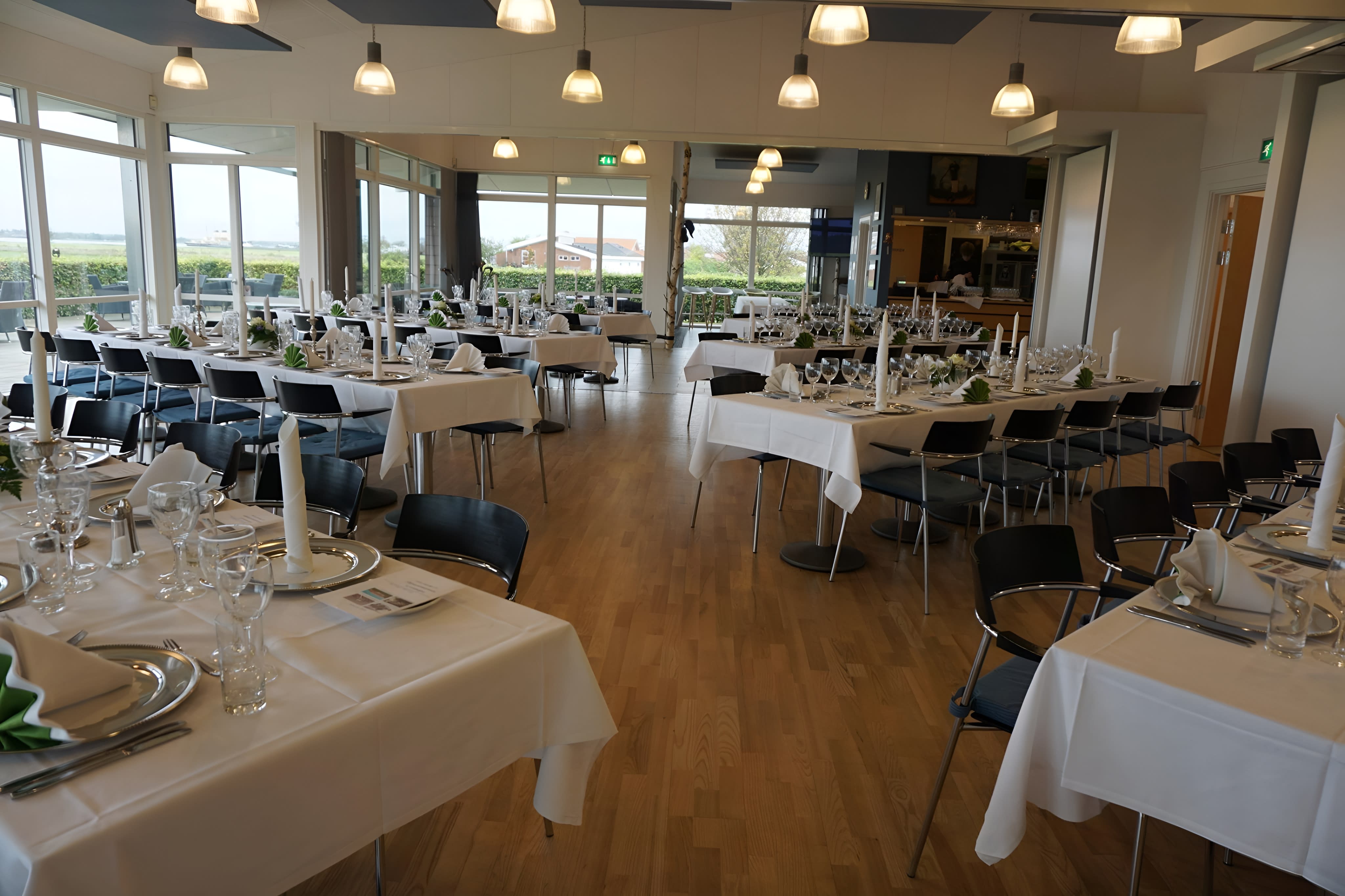 Golfcaféen Hals ligger som navnet antyder i Hals i et af Hals Golfklubs lokaler. Selskabslokalet kan prale med en unik udsigt over de smukke velplejede golfbaner samt panoramaudsigt over Limfjorden. Med de store vinduespartier skabes en følelse af at naturen kommer med ind i lokalet, hvilket giver en hyggelig og rummelig atmosfære. Lokalet er dermed lyst og indbydende og kan rumme selskaber op til 65 gæster. I disse unikke rammer byder Golfcaféen på unikke gastronomiske oplevelser ud fra sæsonens udvalg af råvarer, som danner den ideelle opskrift på en mindeværdig begivenhed. Beliggende centralt i Hals er Golfcaféen det perfekte sted for jeres næste festlige begivenhed, idet der er gode transportmuligheder i nærheden, hvilket gør det nemt og bekvemt for alle gæster at ankomme til destinationen. Yderligere tilbyder lokationen gratis parkeringspladser til alle gæster. Placeringen nær Limfjorden og den særprægede udsigt medvirker yderligere til, at Golfcaféen skal danne rammerne for jeres kommende arrangement. Rammerne er fleksible og kan ved hjælp af foldevægge indrettes efter behov. Så uanset om I er 15 eller 65 gæster er Golfcaféen det oplagte valg, hvor personalet vil stå klar til at markere jeres kommende bryllup, konfirmation, runde fødselsdag, barnedåb, mindehøjtidelighed eller, hvad I ellers kunne tænke at fejre.