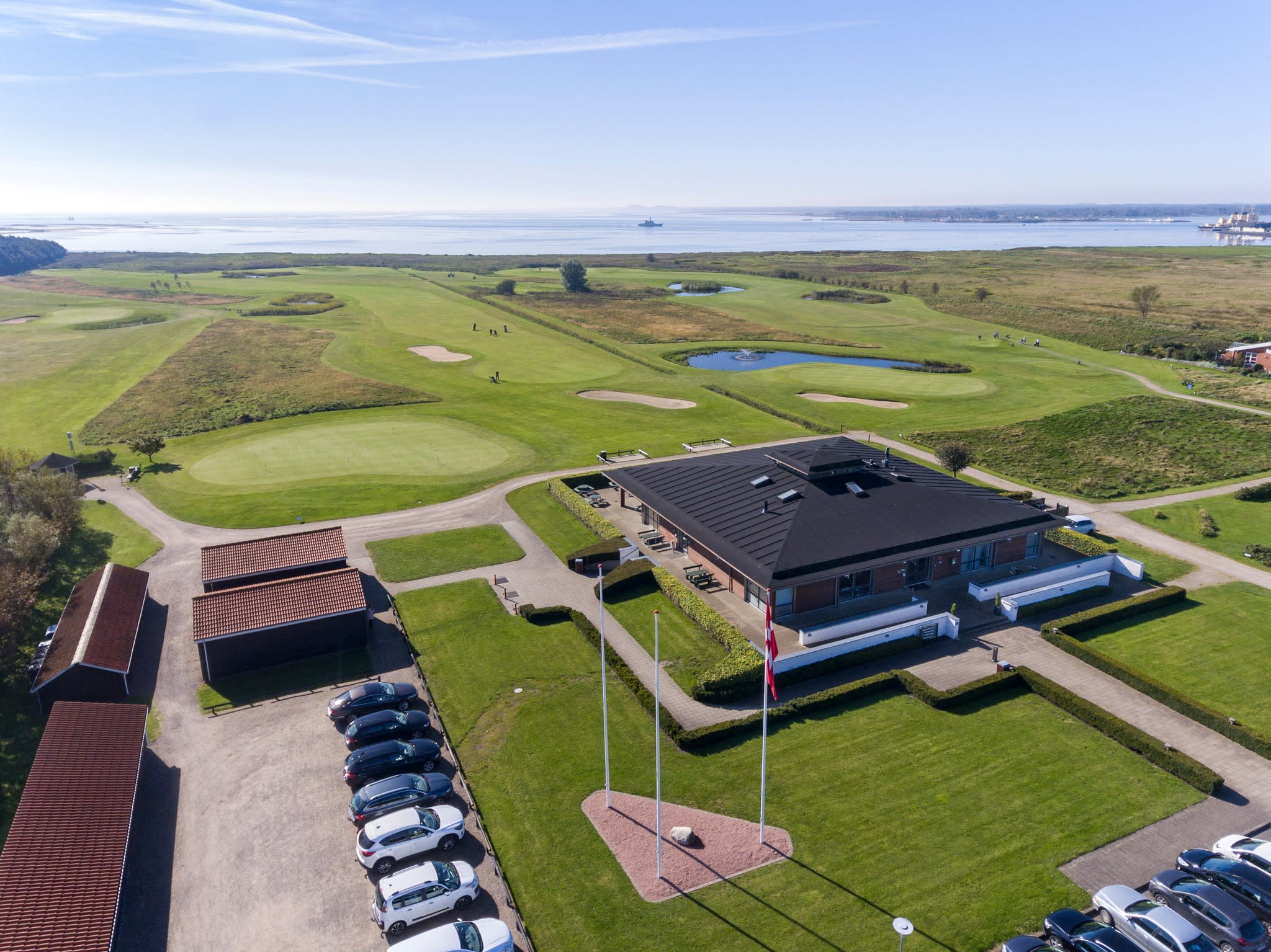 Indbydende og moderne lokale med panoramaudsigt over Limfjorden og golfbanerne