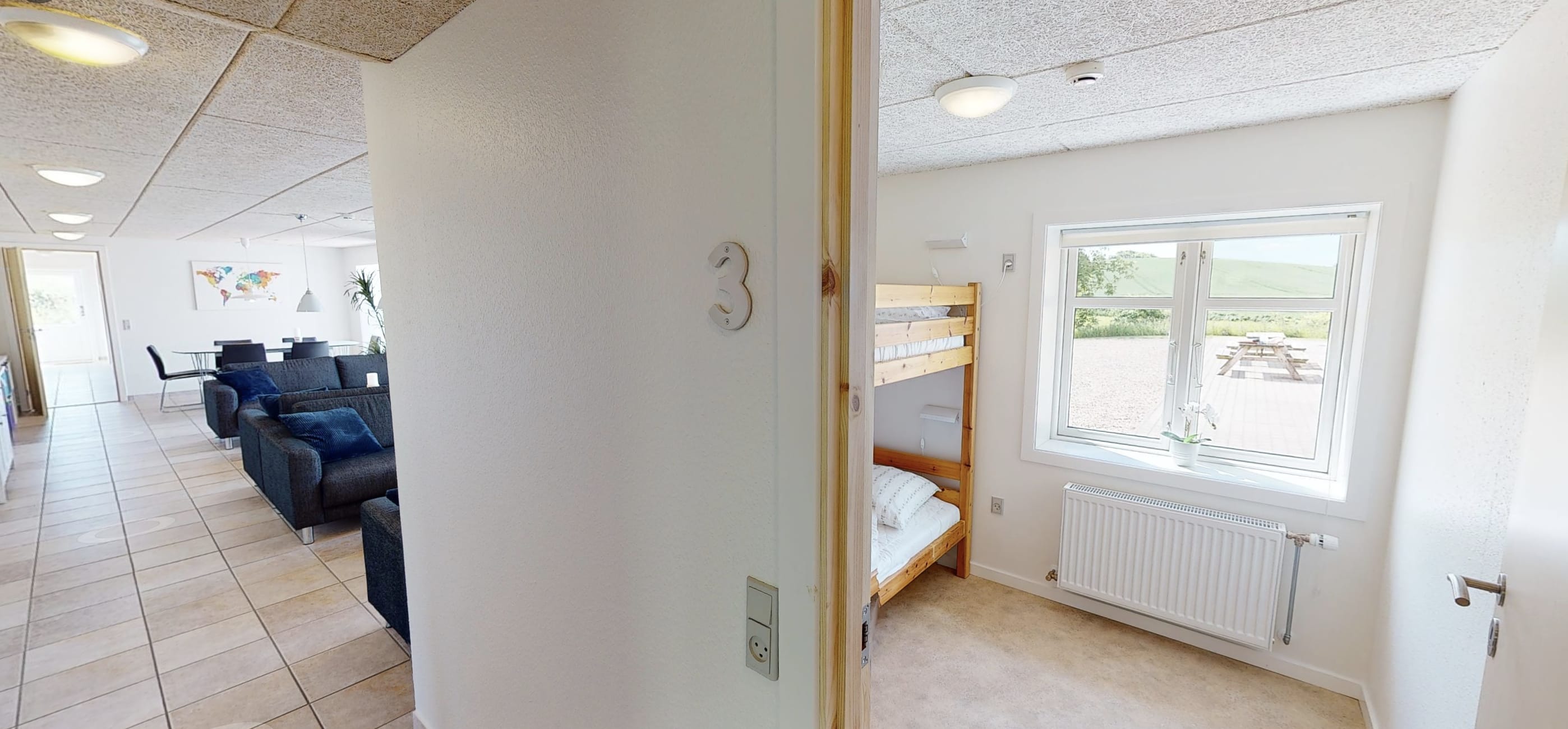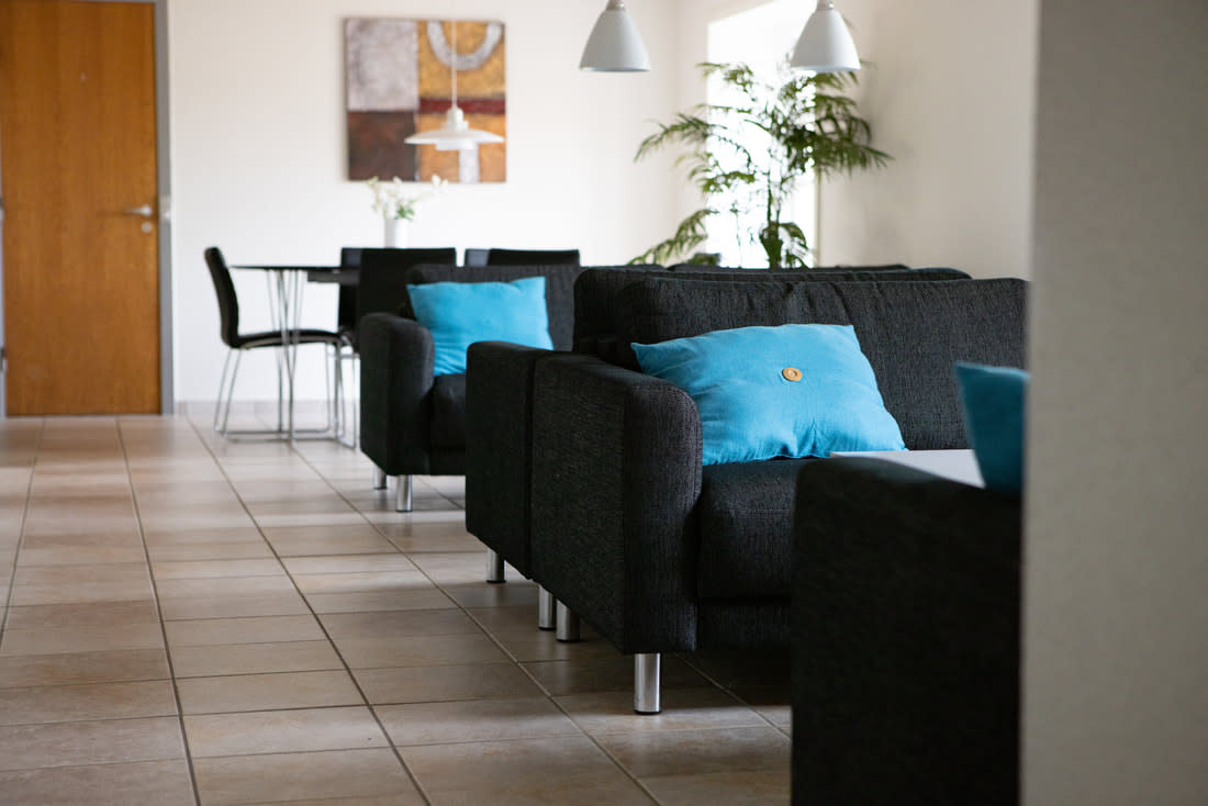 Aktivitets-/fællesrummet byder på underholdning som poolbord, bordtennis, bordfodbold, højttalersystem og et hyggeligt sofahjørne.