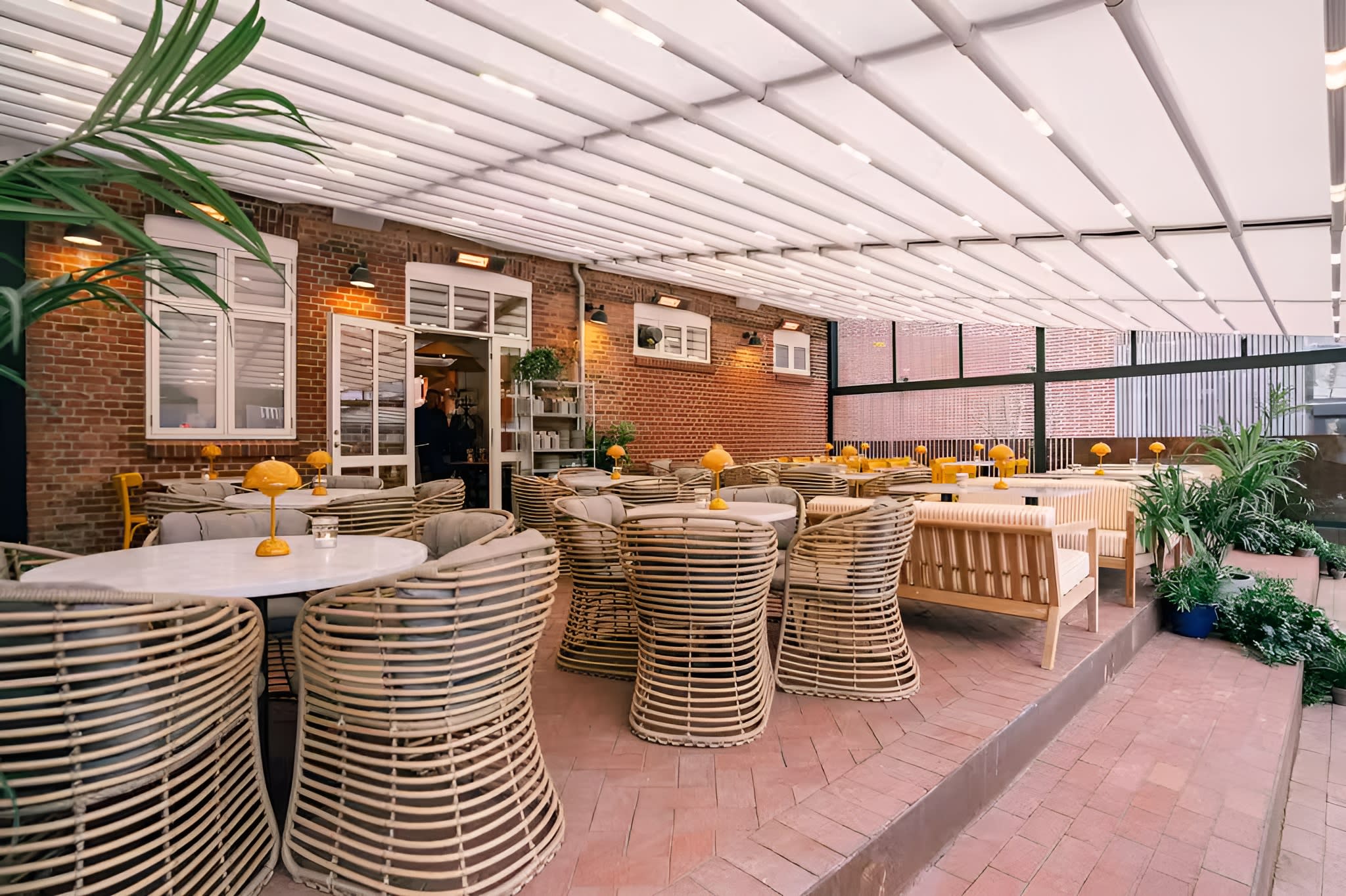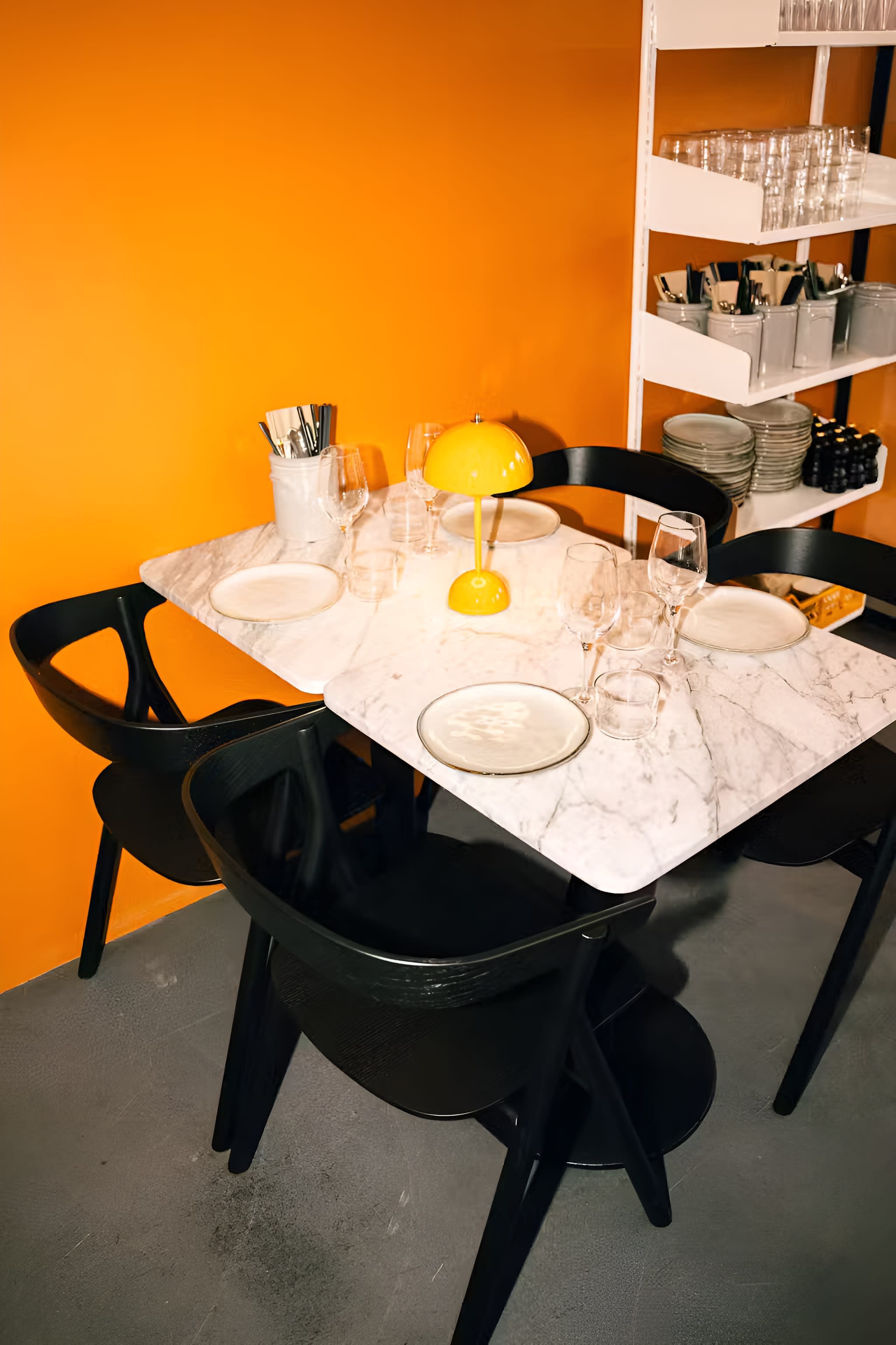 Hanzō råder over to stemningsfulde lokaler: Restauranten og Terrassen. Restauranten, Hanzōs hovedlokale, byder gæsterne velkommen med en autentisk atmosfære, der afspejler stedets asiatiske rødder. Orange vægge, autentiske fletlamper og asiatiske pyntegenstande møder nordisk minimalisme i form af rå betonlignende gulve, marmorborde og en newyorker væg. Dette unikke samspil skaber en stemningsfuld ramme, der er ideel til alt fra hyggelige familiemiddage til festlige aftener med vennerne. Terrassen, Hanzōs private selskabslokale, tilbyder frie rammer året rundt takket være opvarmning. Her skaber farverige lamper, fletstole, hyggelige sofaer og frodige grønne planter en atmosfærisk oase, perfekt til både intime stunder og livlige fester. Med mulighed for at åbne mellem lokalerne kan Hanzō huse op til 125 gæster til ét storslået arrangement. Begge lokaler er fleksible, og kan tilpasses til jeres specifikke selskab.
