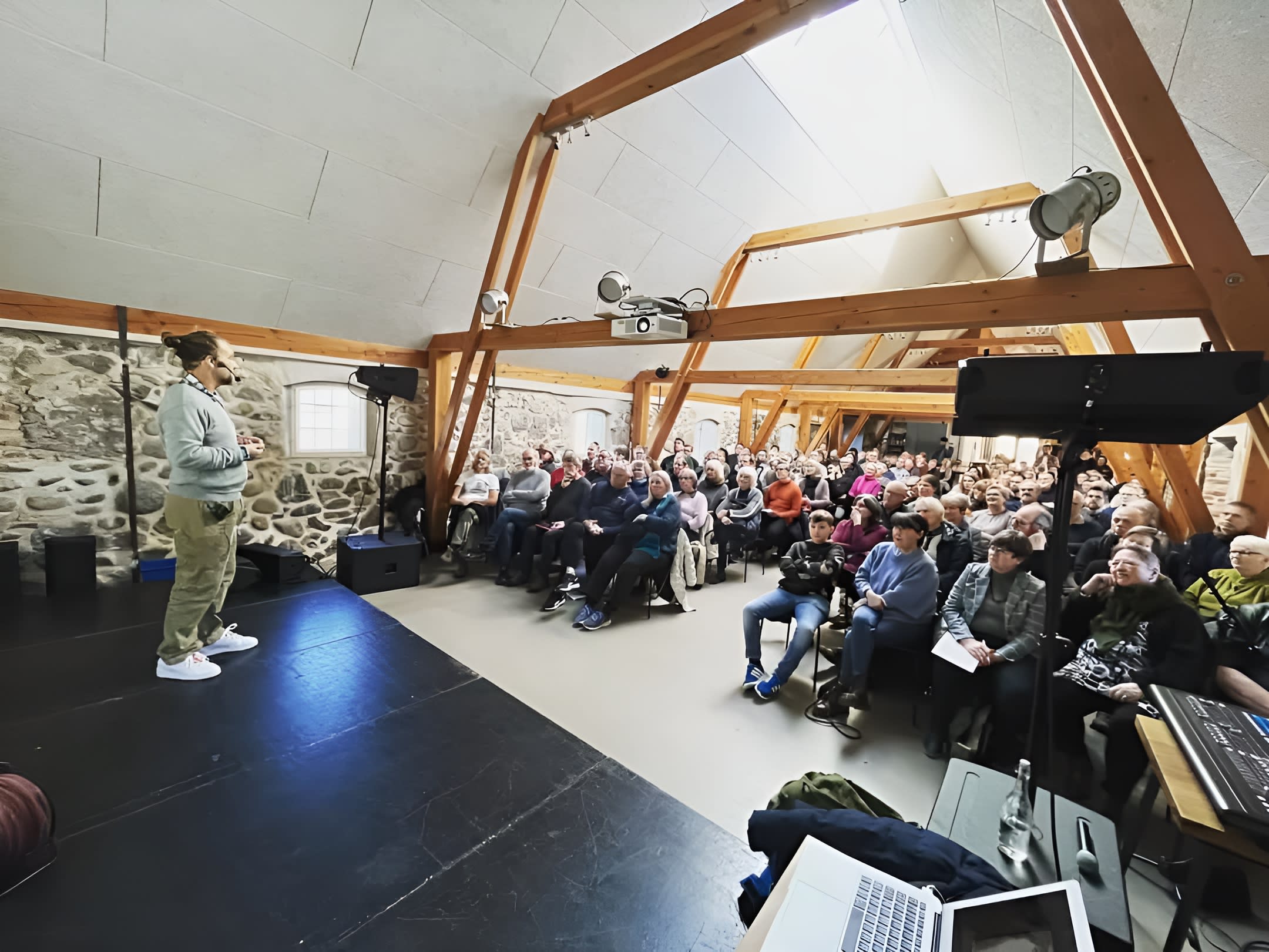 Havmøllens bygninger byder på en række alsidige rum, der kan tilpasses ethvert professionelt behov. Salen, med sine originale kampestensvægge og moderne AV-udstyr, er ideel til større præsentationer og konferencer. Hestestalden tilbyder en mere intim setting med synlige bjælker og fleksible arbejdsstationer, perfekt til kreative workshops og gruppediskussioner. Udendørsarealerne, herunder gårdrummet og de omkringliggende naturområder, indbyder til teambuilding-aktiviteter og inspirerende pauseområder. Alle lokaler forener det rustikke med det elegante og er udstyret med moderne teknologi til at understøtte jeres professionelle behov.
