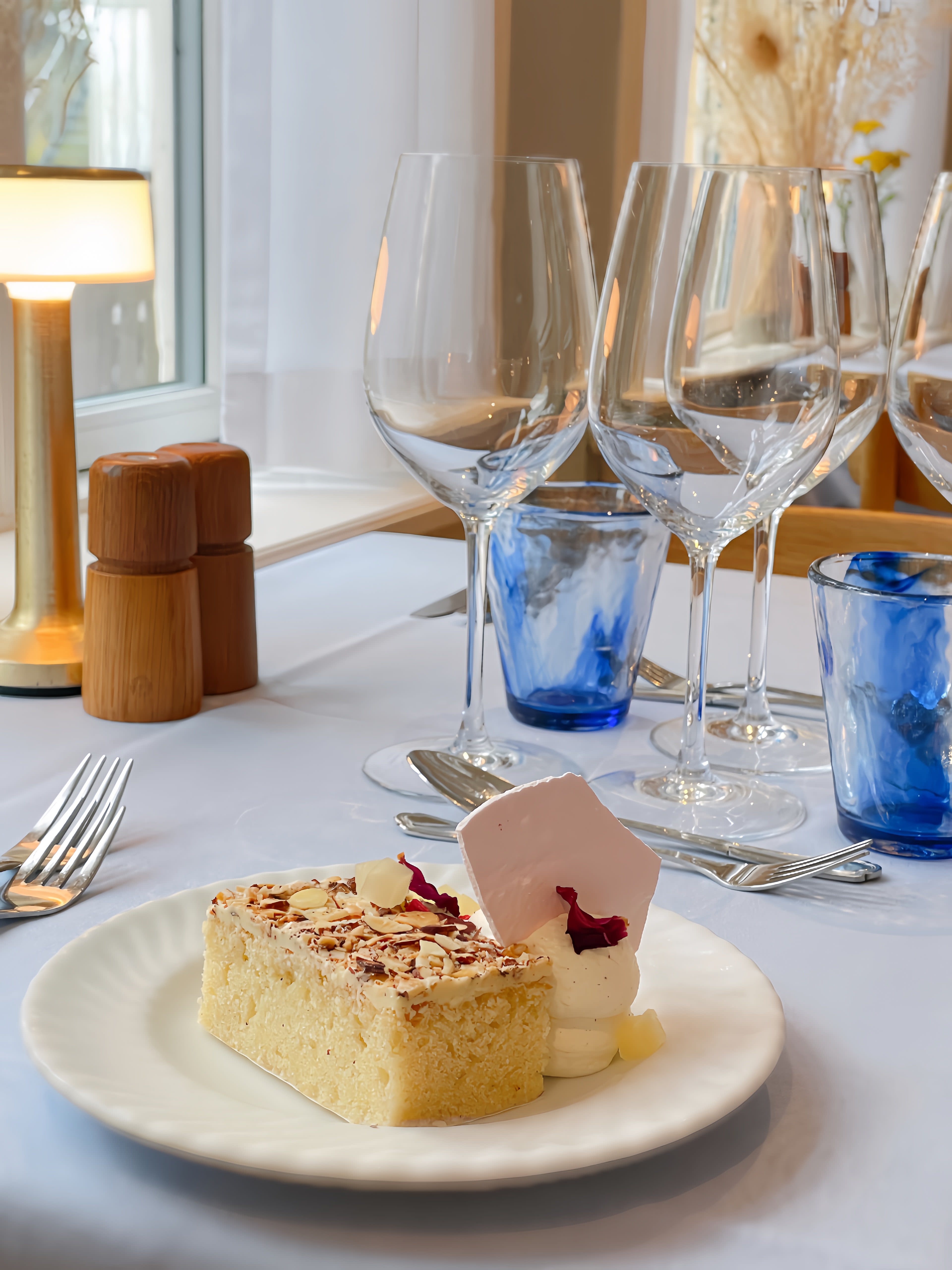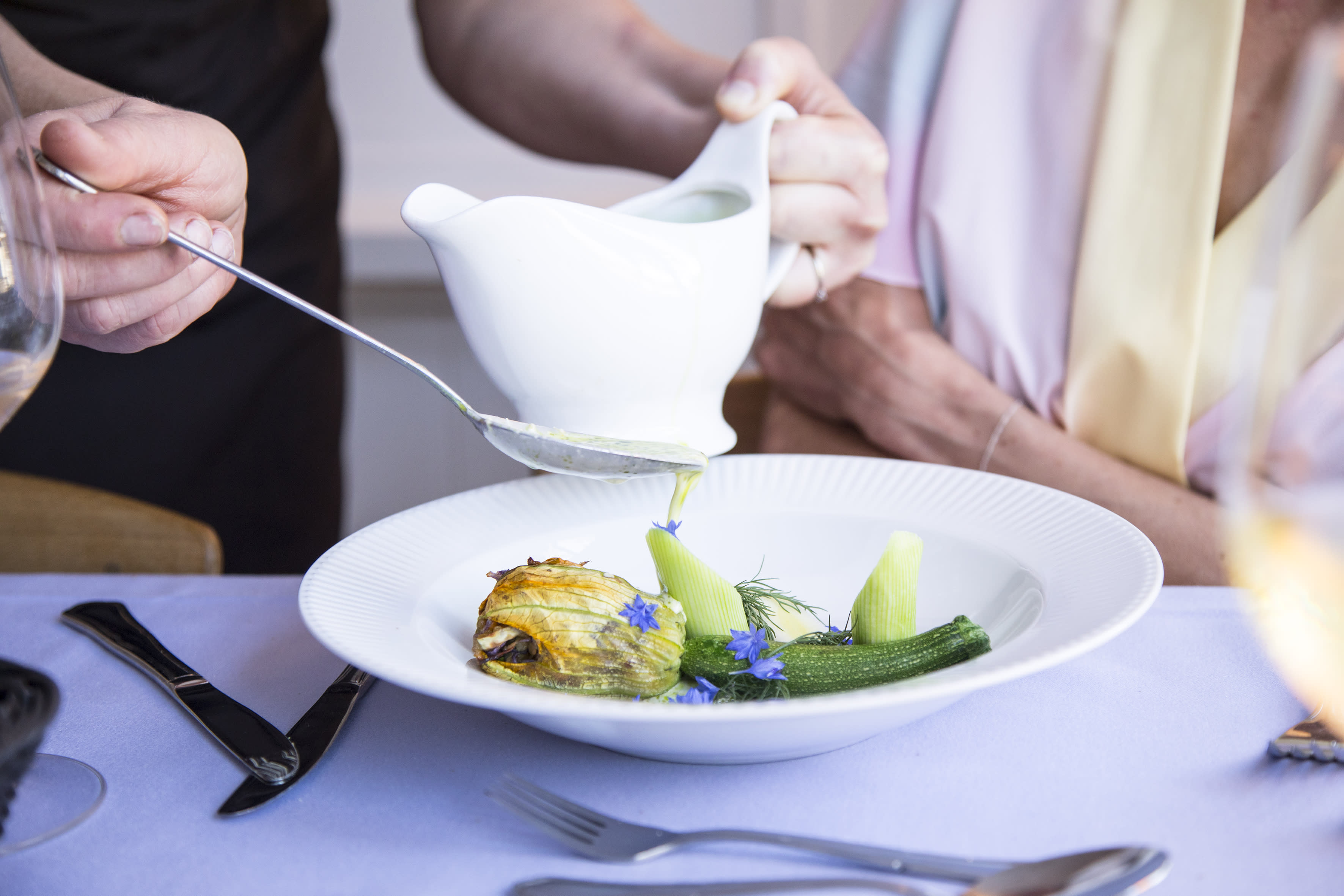 Hotellets restaurant serverer hjemmelavet mad lavet af lokale og økologiske råvarer, og der er fokus på at skabe unikke madoplevelser, herunder ugentlige "høstgilde" middage med friske ingredienser. Gæsterne kan også deltage i vinmenuer og smagninger, der fremhæver lokale producenter.