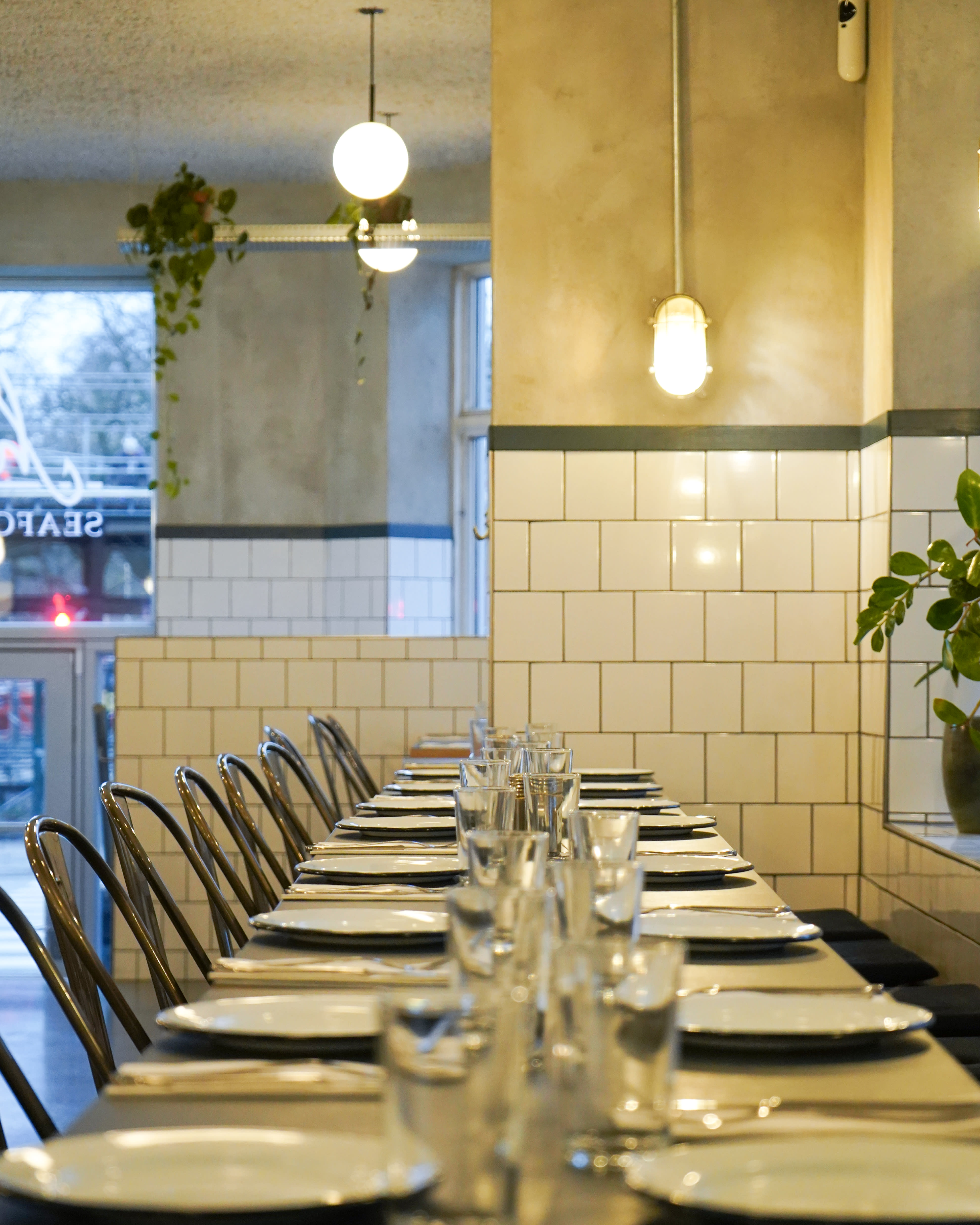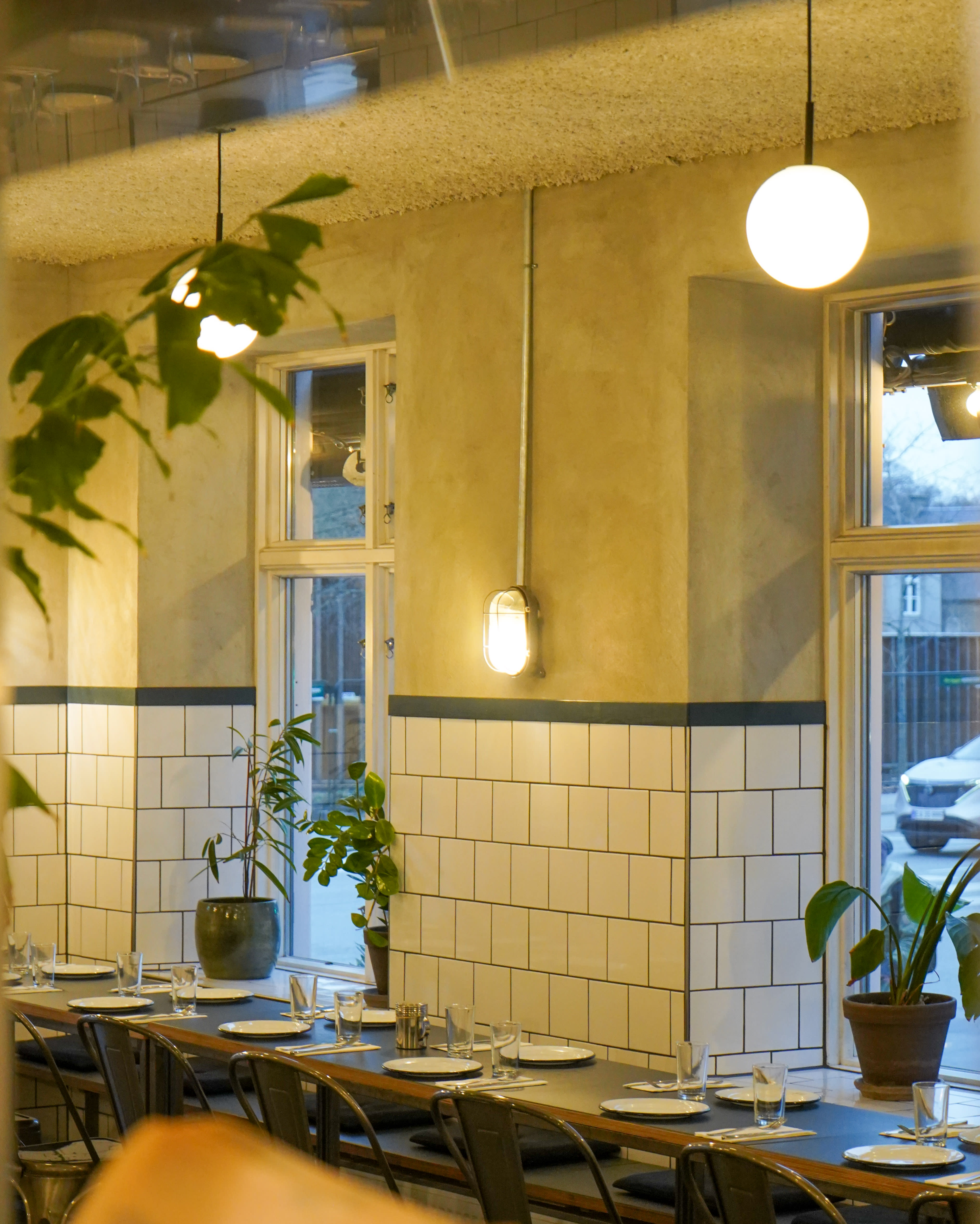 Indenfor byder restauranten på et rummeligt lokale, der er indrettet med både hyggelige båse og langborde, perfekt tilpasset til selskabets størrelse.