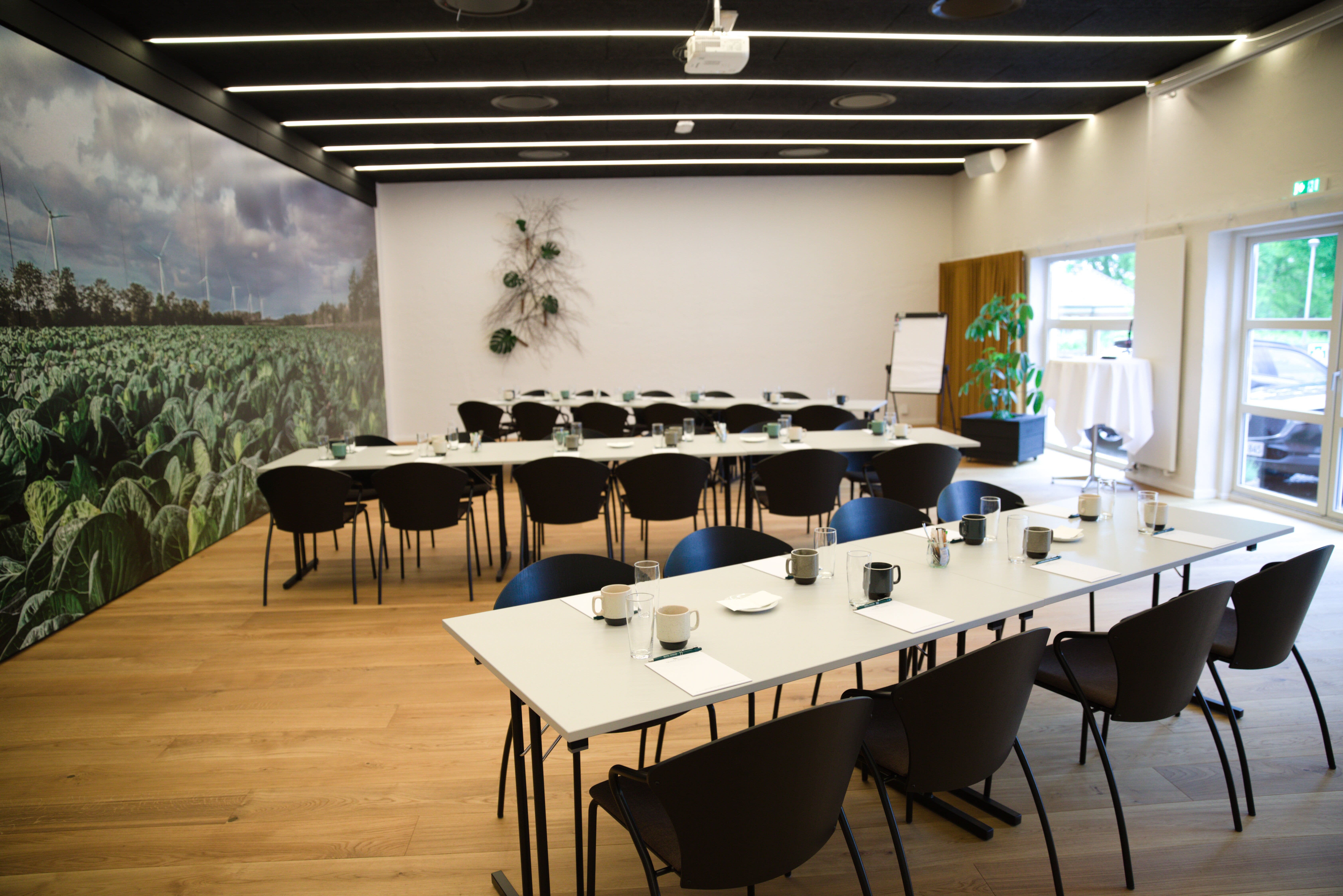 Hotellets nyrenoverede, lyse lokaler er ideelle for en bred vifte af erhvervsarrangementer, herunder møder, konferencer, seminarer og workshops, med kapacitet fra intime grupper på 2 til større forsamlinger på op til 200 deltagere. Alle lokaler er udstyret med state-of-the-art AV-udstyr, der sikrer problemfri præsentationer og videokonferencer. De store vinduespartier lader det naturlige lys strømme ind og trækker den inspirerende hedelandskab med indendørs, hvilket skaber optimale betingelser for produktive forretningsmøder og kreative brainstorming-sessioner. Den enkle indretning med rene linjer, kombineret med naturinspirerede elementer, fremmer en rolig og fokuseret atmosfære, der er ideel til koncentreret arbejde og vigtige forretningsdiskussioner.