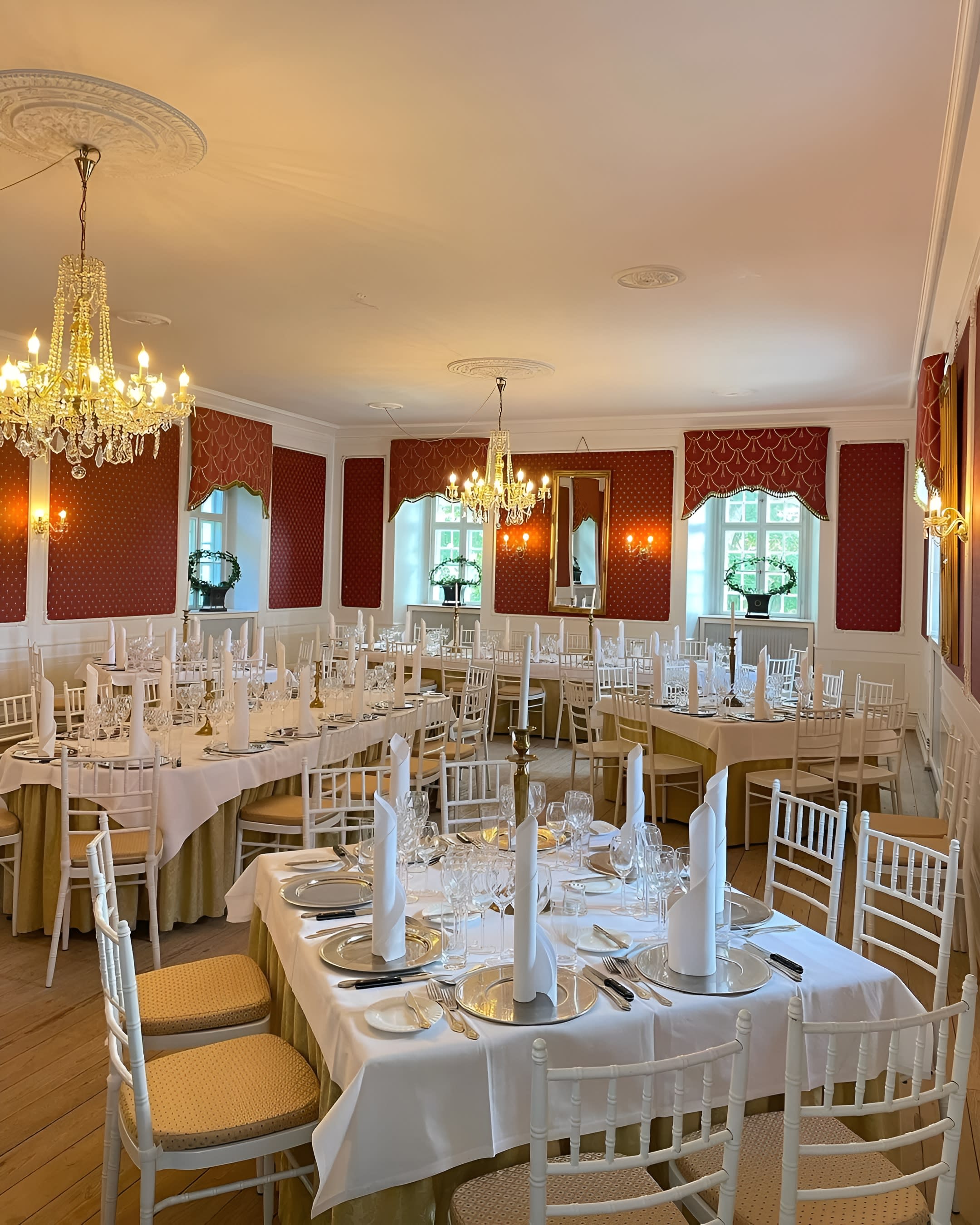 På slottet findes også attraktive overnatningsmuligheder med smukt indrettede hotelværelser, der gør det muligt, at tilbyde overnatning til jeres gæster. Her er der plads til i alt 180 overnattede gæster, hvilket gør det muligt at forlænge arrangementet, så I kan nyde en hyggelig morgenmad sammen og snakke om gårsdagens begivenhedsrige øjeblikke.