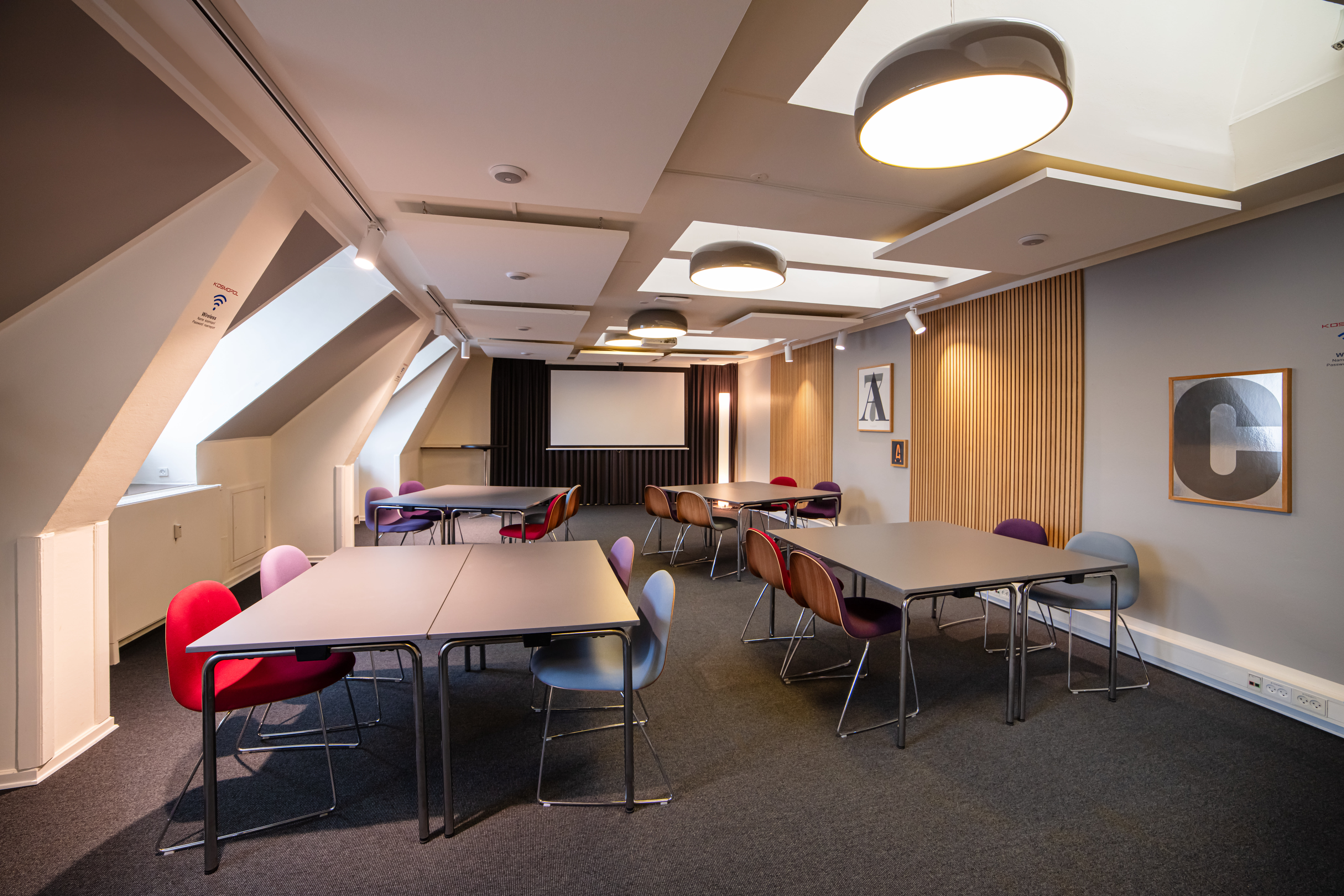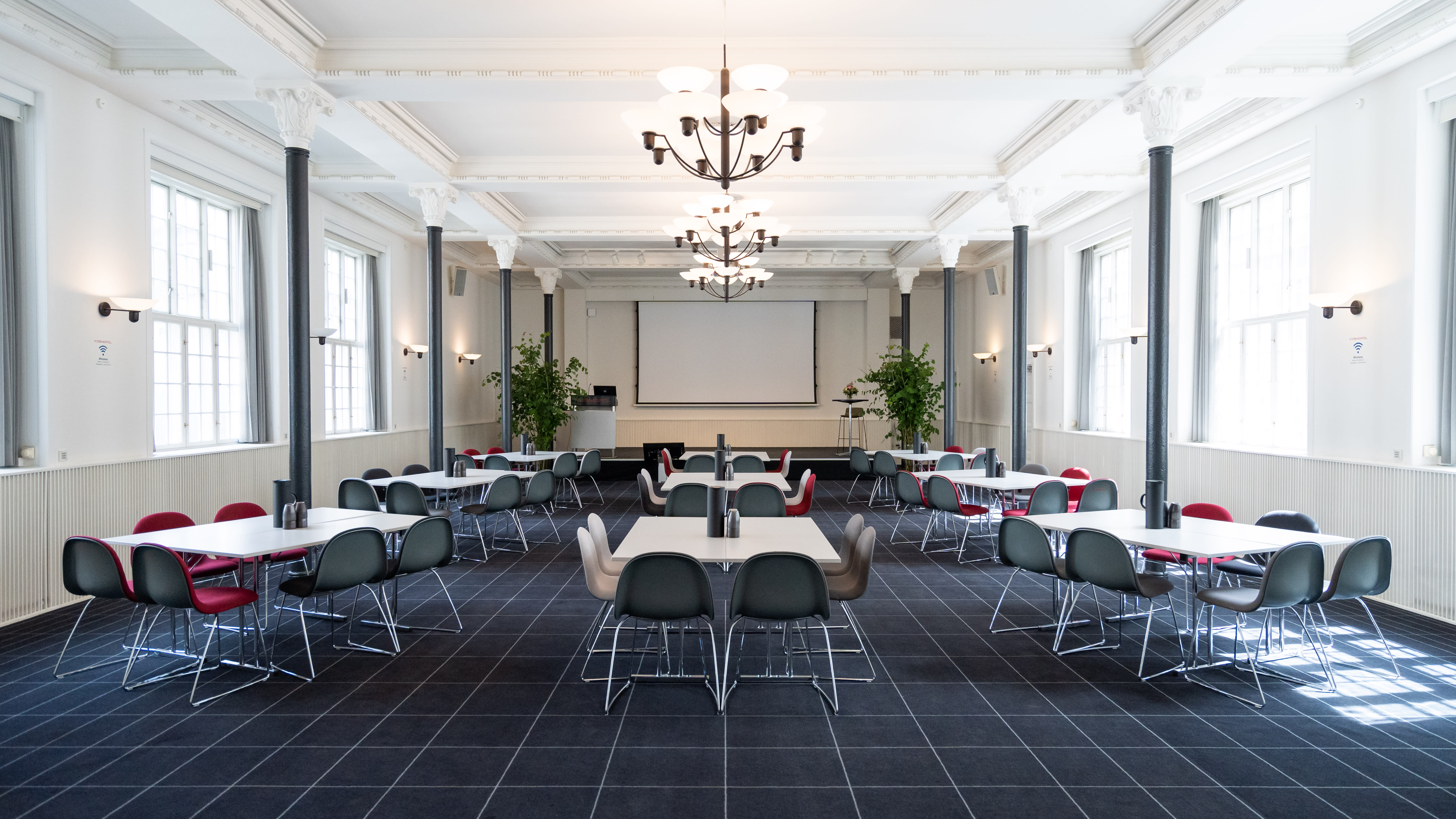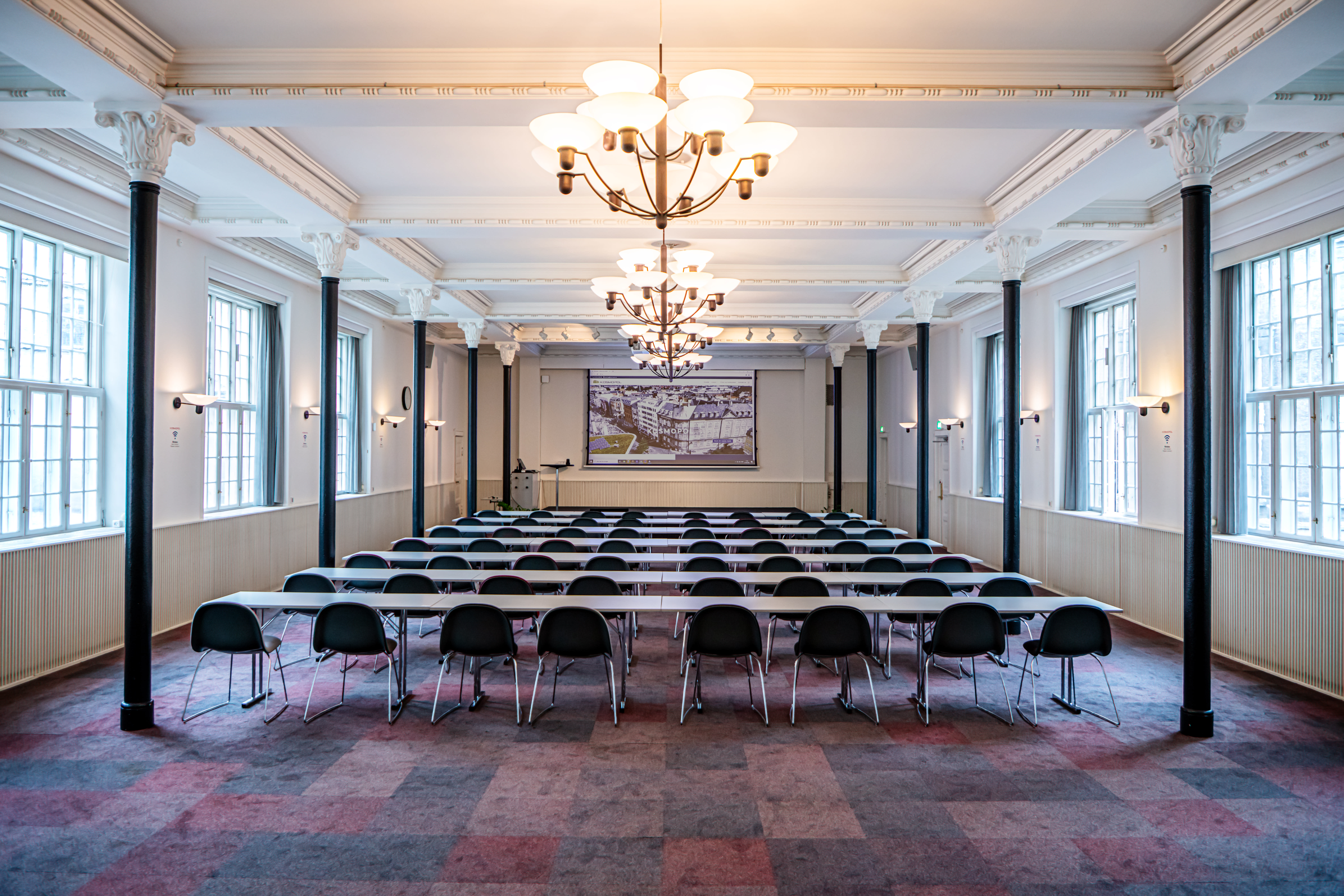 Hos Kosmopol mener de, at lokaler og omgivelser er vigtige faktorer for at skabe den rette stemning og en vellykket begivenhed. Derfor tilbyder lokationen 10 unikke møde- og konferencelokaler, som alle er fleksible i størrelse og udformning, og som kan sætte rammerne og standarden for et veloverstået og vellykket arrangement. Lokalerne er historiske og smukke og har masser af sjæl og stemning, og dermed bydes I indenfor til en særlig oplevelse i de unikke rammer. Med lokaler beregnet til de små intime møder med 6 deltagere op til de store lokaler, der kan rumme 200 deltagere, tilbyder Kosmopol en bred vifte af lokaler, som kan imødekomme ethvert ønske for den kommende begivenhed. Så uanset om I påtænker at afholde foredrag, generalforsamling, produktlancering, afdelingsmøde, temafestival med særlige budskaber, messe, jubilæum, bestyrelsesmøde, konceptudviklingssamling eller noget helt andet kan Kosmopols lokaler danne de ideelle rammer for jeres arrangement.