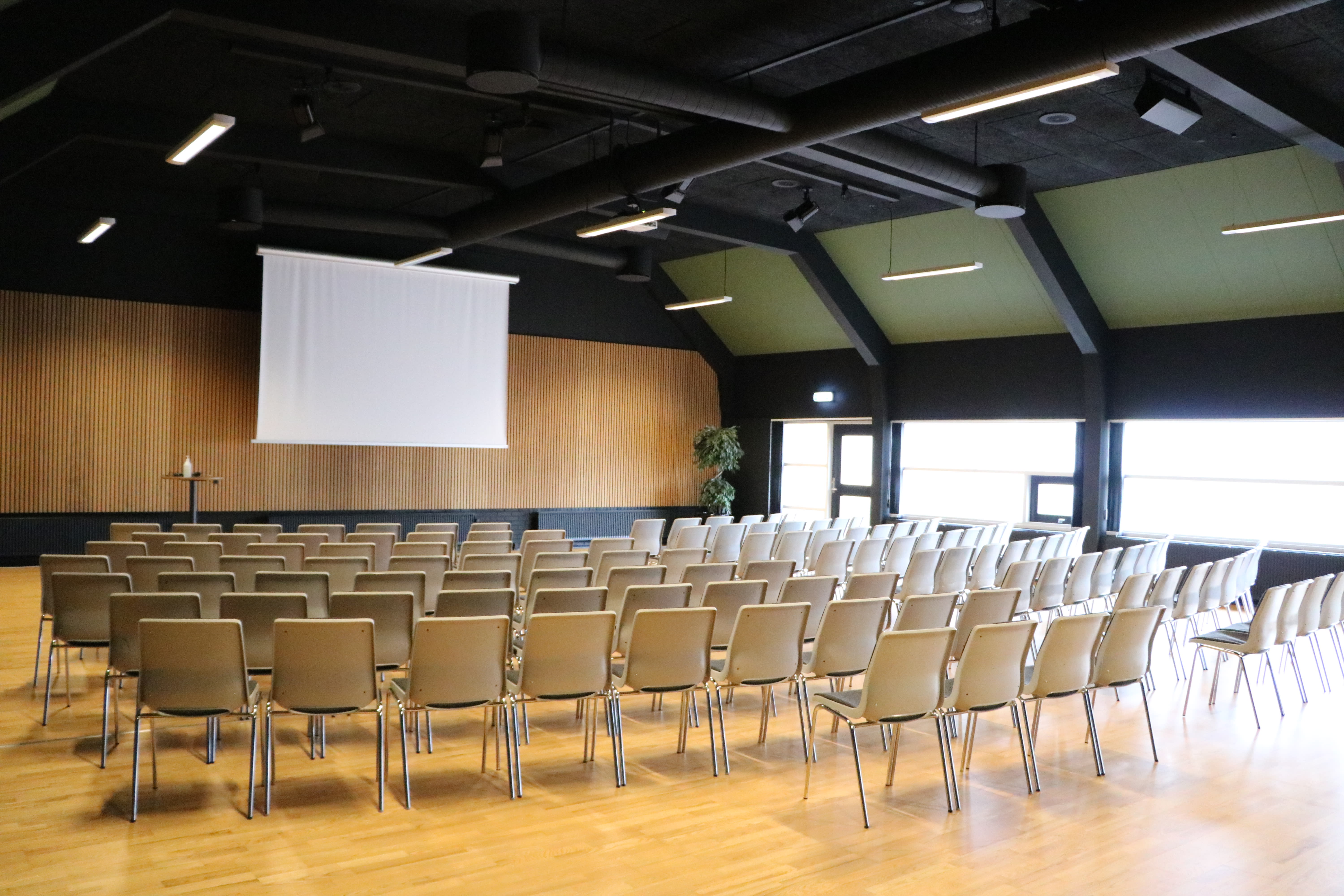 KulturCenter Skive byder på 17 alsidige lokaler, herunder fuldt udstyrede konferencesale, mødelokaler, breakout-rooms, networking-områder og moderne haller. Alle rum er nyrenoverede med en moderne, nordisk indretning, der skaber optimale rammer for koncentration og kreativitet. Den lyse og fleksible indretning med højt til loftet og godt naturligt lysindfald sikrer et behageligt arbejdsmiljø. Møblerne kan let omrokeres for at tilpasse sig forskellige mødeformater, og avanceret AV-udstyr er standard i alle lokaler. Flere rum har direkte adgang til en gårdhave, perfekt til pauser eller uformelle diskussioner i det fri.