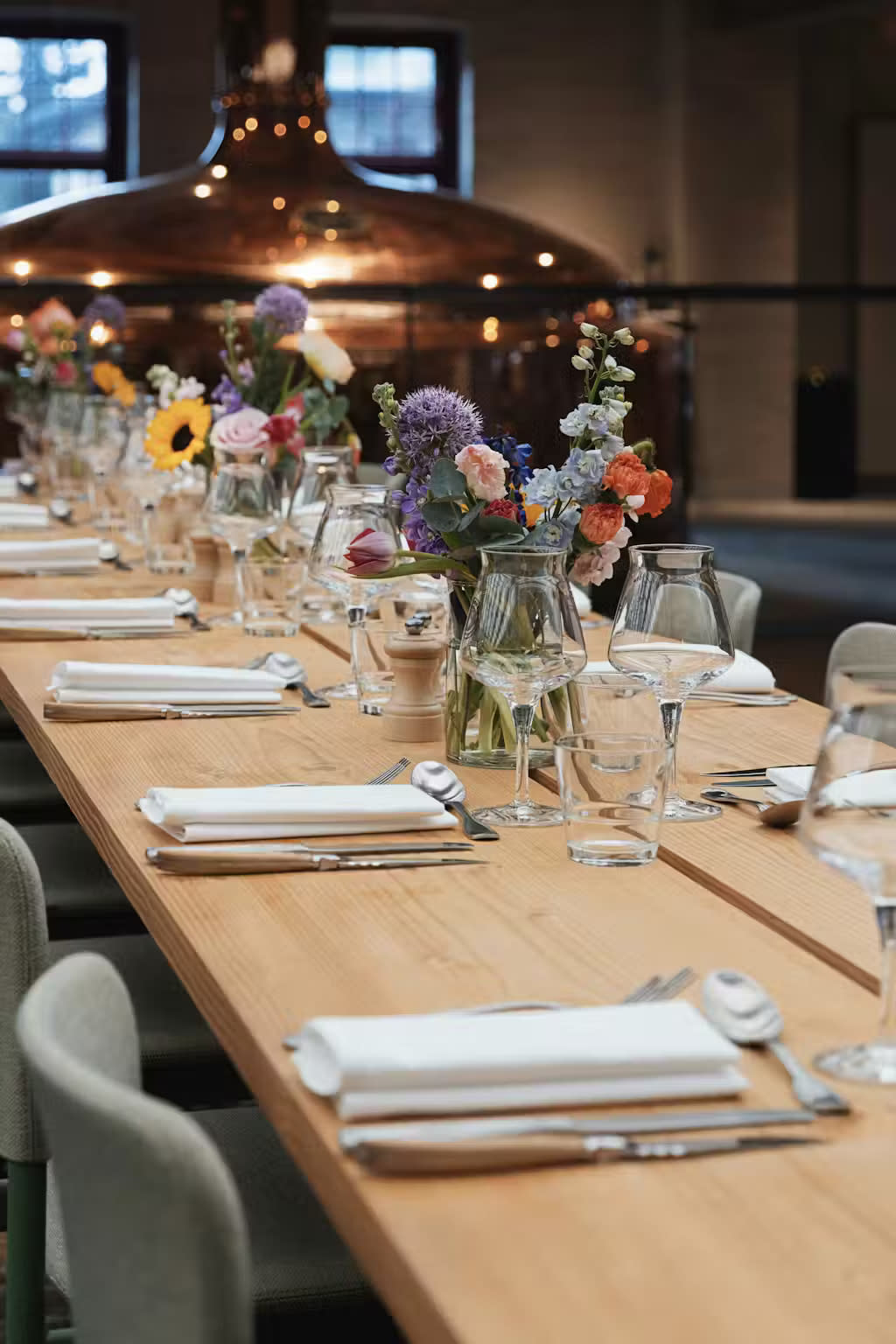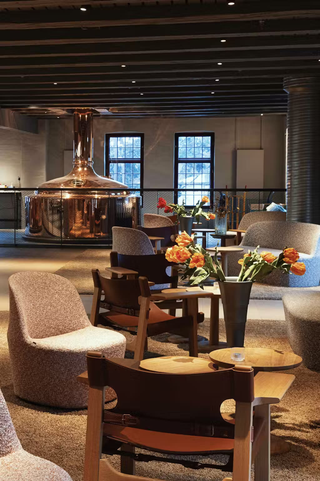 Træd ind i imponerende rum, hvor høje lofter og historiske detaljer møder moderne designelementer, og skab en atmosfære, der inspirerer til nytænkning og åben dialog. Fra det eksklusive Brewer's Office til det rummelige Brew Hall og det stemningsfulde Brewer's Loft, tilbyder Madklubben x Home of Carlsberg fleksible lokaler, der kan skræddersys til jeres specifikke behov. De ikoniske kobberkedler, der stadig bruges til ølproduktion, står som et unikt vartegn for stedets levende historie og tilfører en ekstra dimension til jeres professionelle arrangementer. For de uformelle mødeøjeblikke eller en forfriskende pause mellem intense diskussioner, tilbyder den hyggelige terrasse et pusterum, hvor I kan nyde en inspirerende øl i den friske luft. Denne kombination af indendørs elegance og udendørs afslapning gør Madklubben x Home of Carlsberg til det ideelle sted for dagens moderne, dynamiske virksomheder, der søger at bryde ud af kontorlandskabets vante rammer.