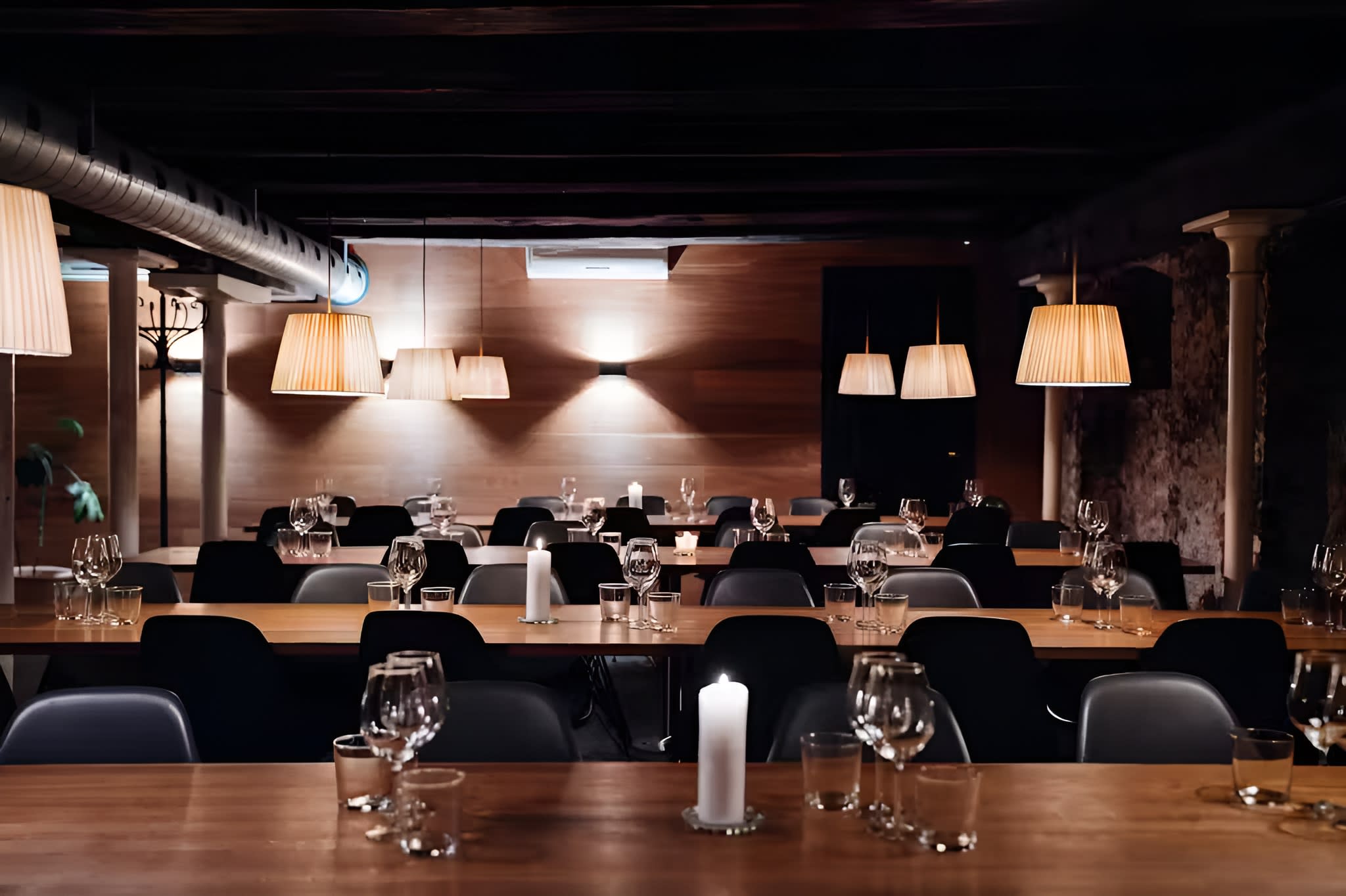 Træd ned ad trappen til Madklubben Københavns kælderlokaler, og lad jer inspirere af en atmosfære, der forener historisk charme med moderne dansk design. De hyggelige rum med fritlagte mursten, danske møbelklassikere og stemningsfuld belysning skaber en unik ramme, der stimulerer kreativ tænkning og åben dialog. Vinduespartier i gadeniveau sikrer naturligt lys og en fornemmelse af forbindelse til byens puls, perfekt til at holde energien og inspirationen oppe under lange møder eller intense brainstorming-sessioner. Madklubben Københavns fleksible indretning tillader jer at udnytte rummet efter jeres specifikke behov. Det semiprivate baglokale er ideelt til fokuserede strategimøder, mens det helt afskærmede Boardroom tilbyder den perfekte ramme for fortrolige forhandlinger. For større konferencer eller firmapræsentationer kan hele restauranten rumme op til 100 deltagere. Det hyggelige lille udeområde foran restauranten giver mulighed for forfriskende pauser og uformelle netværksøjeblikke i den friske luft.