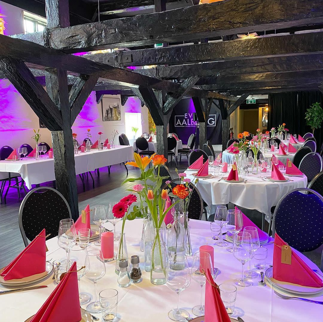 Beliggende i hjertet af Aalborg ligger den charmerende lokation "Maren Turis Gade". Denne lokation er Event Aalborgs egen eventlokation, og er en charmerende og autentisk bygning. Faktisk er disse lokaler en del af Danmarks ældste og bedst bevarede købmandsgård, som er opført i klassisk bindingsværk, hvilket ses gennem de originale synlige bjælker og de skræve vinkler og vægge, der tilsammen giver lokalet en autentisk sjæl og charme. På Maren Turis Gade 6 tilbyder Event Aalborg komplette løsninger, hvor alt er inkluderet. Uanset om I repræsenterer en virksomhed, der planlægger en tyrolerfest, en firmajulefrokost, en sommerfest eller den årlige firmafest, eller om I som private søger en passende lokation til bryllup, konfirmation, rund fødselsdag, sommerfest eller bare en stor fest for familie og venner, så kan Event Aalborg imødekomme jeres behov. Beliggende i Aalborg centrum er Maren Turis Gade en attraktiv destination, idet lokalet rummer mange muligheder for såvel store som små begivenheder med en maks kapacitet på 100 spisende gæster. Placeringen i hjertet af Aalborg er unik, hvor det pulserende byliv med restauranter, caféer, butikker og barer skaber en hyggelig og indbydende atmosfære, der sikrer at jeres arrangement er omgivet af en god stemning. Yderligere er det bekvemt for alle gæster at ankomme til destinationen uanset transportmiddel, idet der er gode parkeringsmuligheder i nærområdet samt tog- og busstationer få hundrede meter derfra.