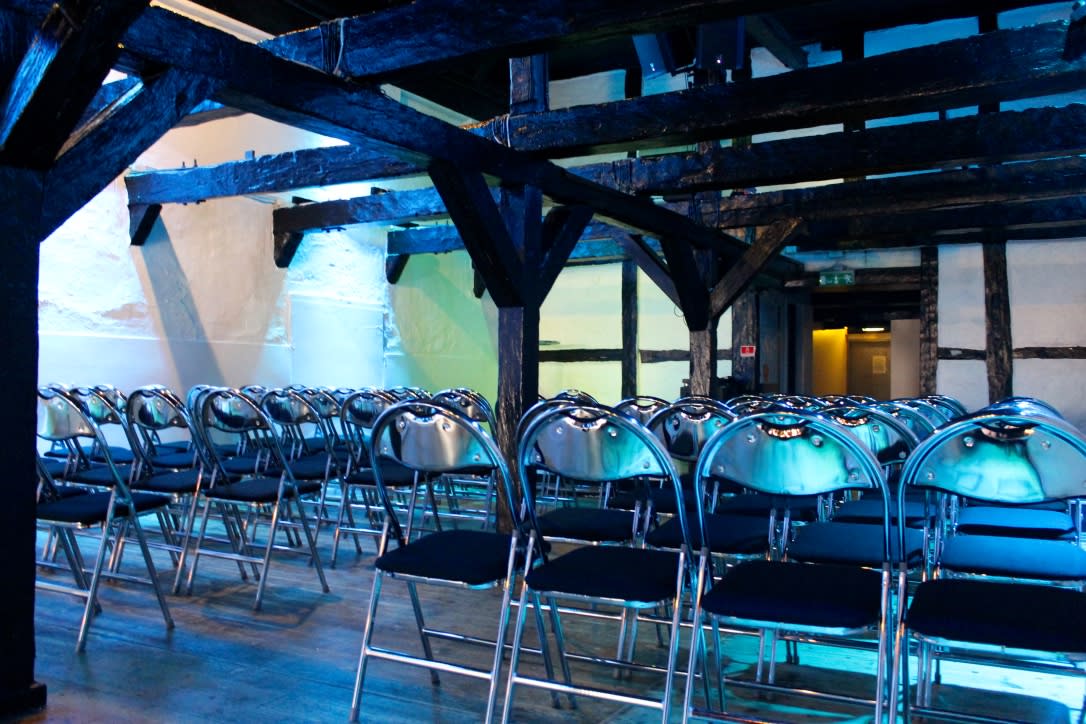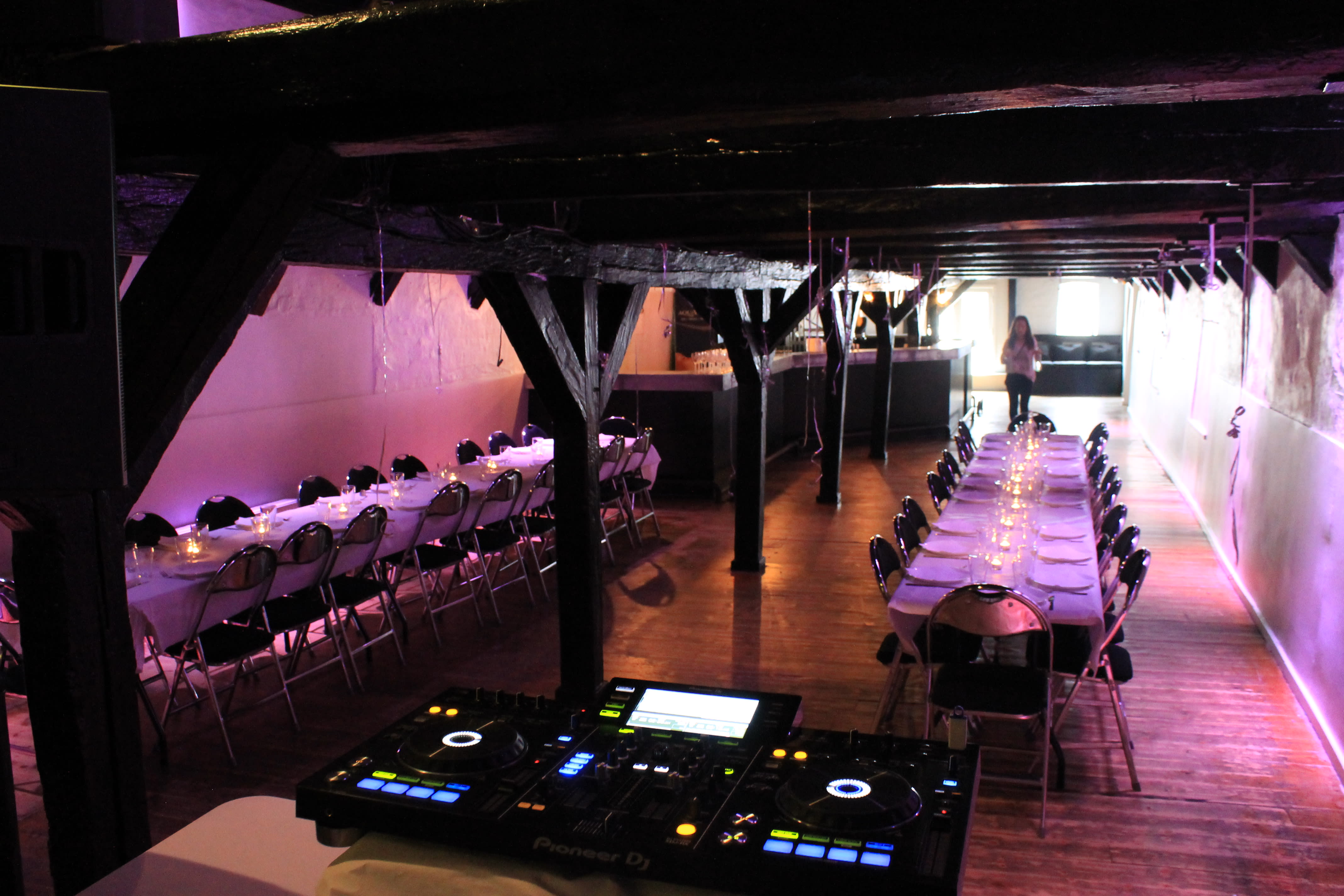 Lokationen tilbyder et charmerende og autentisk lokale med mulighed for opdækning til 100 gæster. Lokalet er præget af bygningens lange levetid, hvilket ses gennem de synlige bjælker midt i rummet samt ved de bulnede vægge og skæve vinkler, der alt sammen giver lokalet patina og karakter. Dermed skinner bygningens historie tydeligt igennem, og tilfører en ekstra dimension til jeres arrangement. Lokalet er fleksibelt og kan indrettes og udformes efter netop jeres individuelle behov. Dette gør det muligt at afholde større festlige arrangementer samt mindre intime begivenheder, idet lokalet kan afskærmes, inddeles og åbnes op, så det passer til jeres ønsker for koncept og udformning.