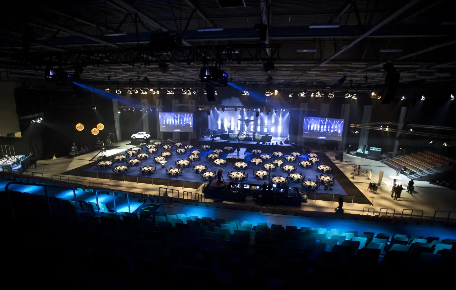 Under samme tag finder I 26 fleksible mødelokaler, tre sale, tre haller og en multiarena til 7.000 deltagere, alle udstyret med lynhurtigt wi‑fi, intelligent lysstyring og nyeste IT/AV‑setup, så skiftet fra workshop til plenum kan klares på få øjeblikke.