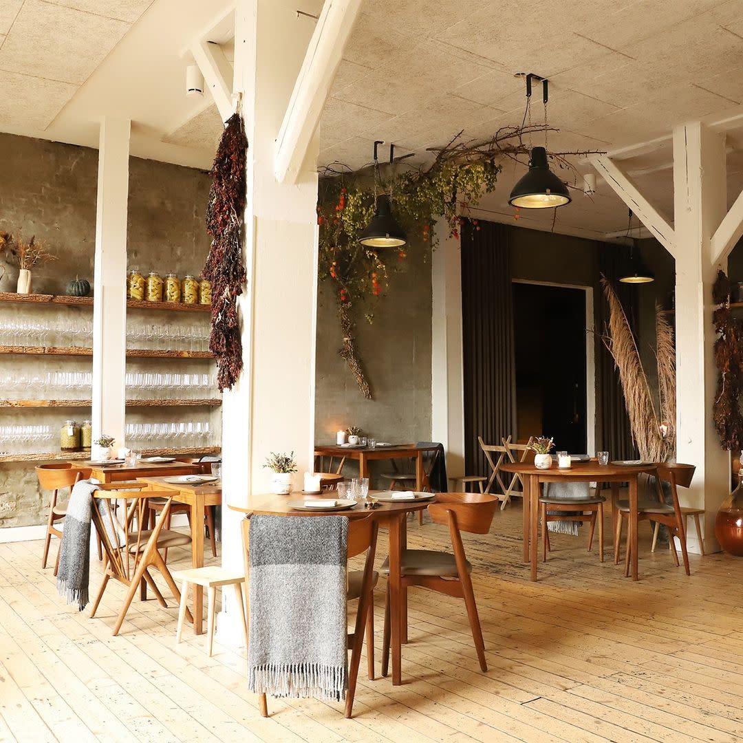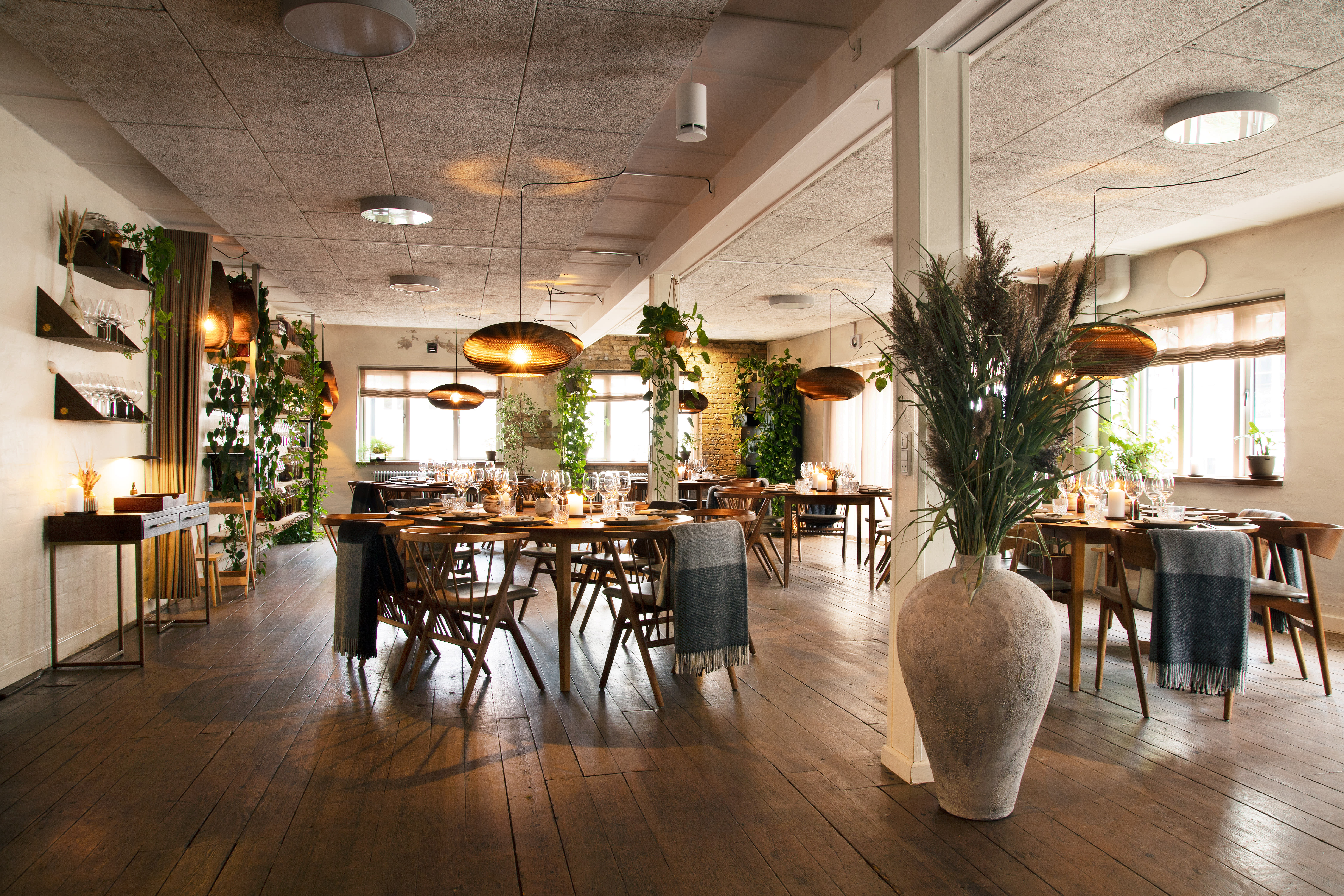 Foruden selskabslokalerne, er det også muligt at booke restauranten. Restauranten er, ligesom de andre selskabslokaler, hyggeligt indrettet i en stilren og autentisk stil. Her findes varme egetræmøbler, der står som en kontrast til de hvidmalede bjælker og fritstående sylteglas, der findes som dekorationer på væggen. Lokalet er holdt i en nordisk og minimalistisk stil, hvor materialerne taler deres eget rustikke og elegante sprog.