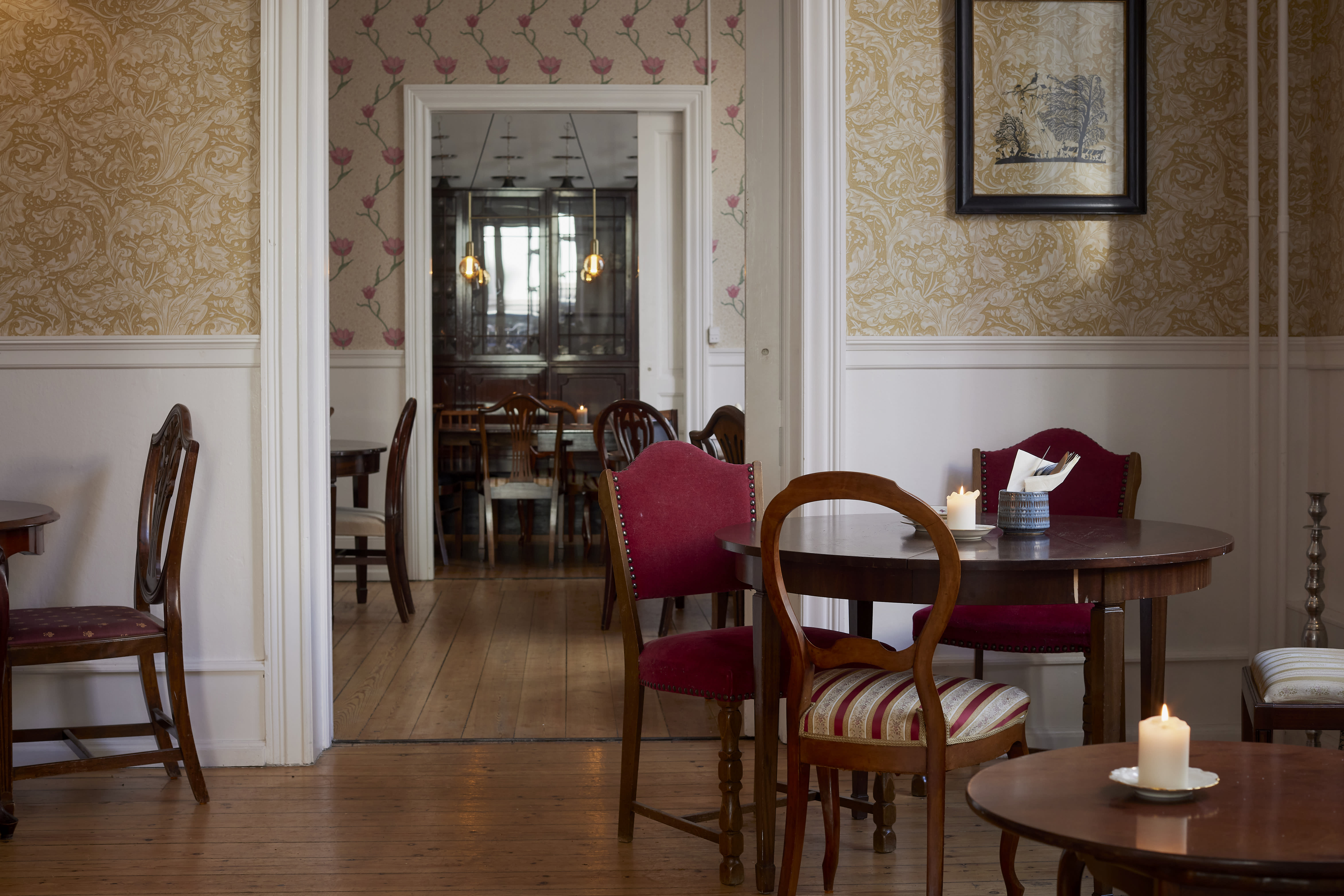 Restauranten tilbyder gastronomiske oplevelser i særklasse. Lokalerne er indrettet med klassisk romantik, hvor blomstrede tapeter, antikke møbler og charmerende mønstre på sofaer og puder skaber en særlig stemning. Dette romantiske udtryk forenes med moderne elementer gennem innovative serveringer og en smart, hyggelig atmosfære.